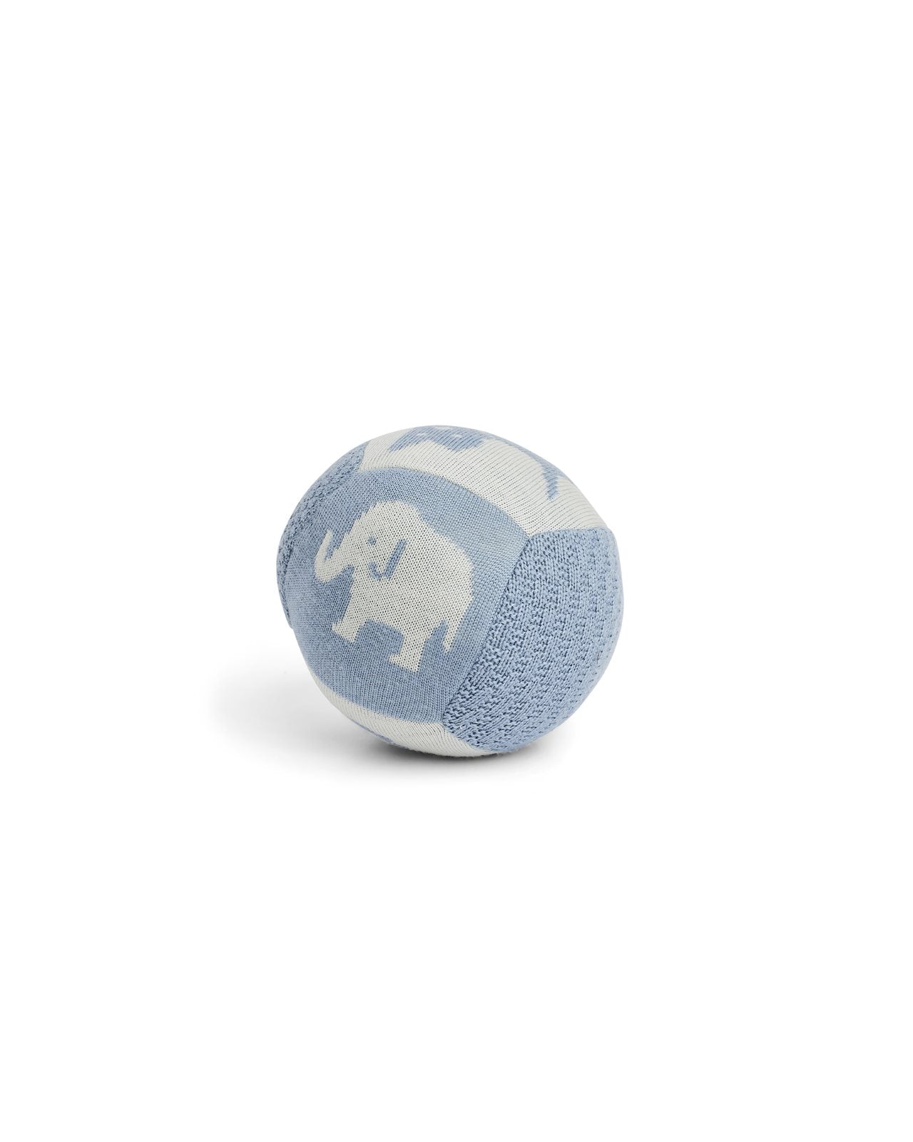 Denne søde strikkede bold i en kær blå farve med elefantmotiv er både sjov og praktisk til små børn. Den er perfekt til leg, og den bløde strik gør den sikker at bruge, samtidig med at den stimulerer barnets sanser. Den lette vægt gør det nemt for børn at gribe og kaste med bolden.