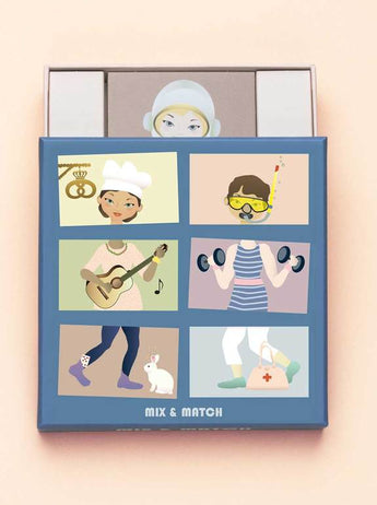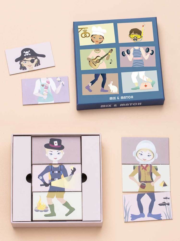 Puslespillet MIX & MATCH med 12 karakter (36 brikker), perfekt til familiehygge. Spillet passer til børn i den tidlige skolealder. Det kan spilles af 2-4 spillere i alderen 3-99 år.