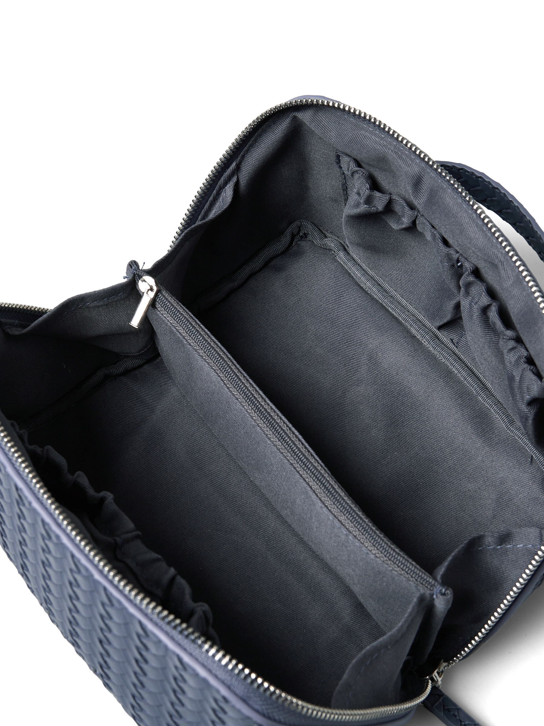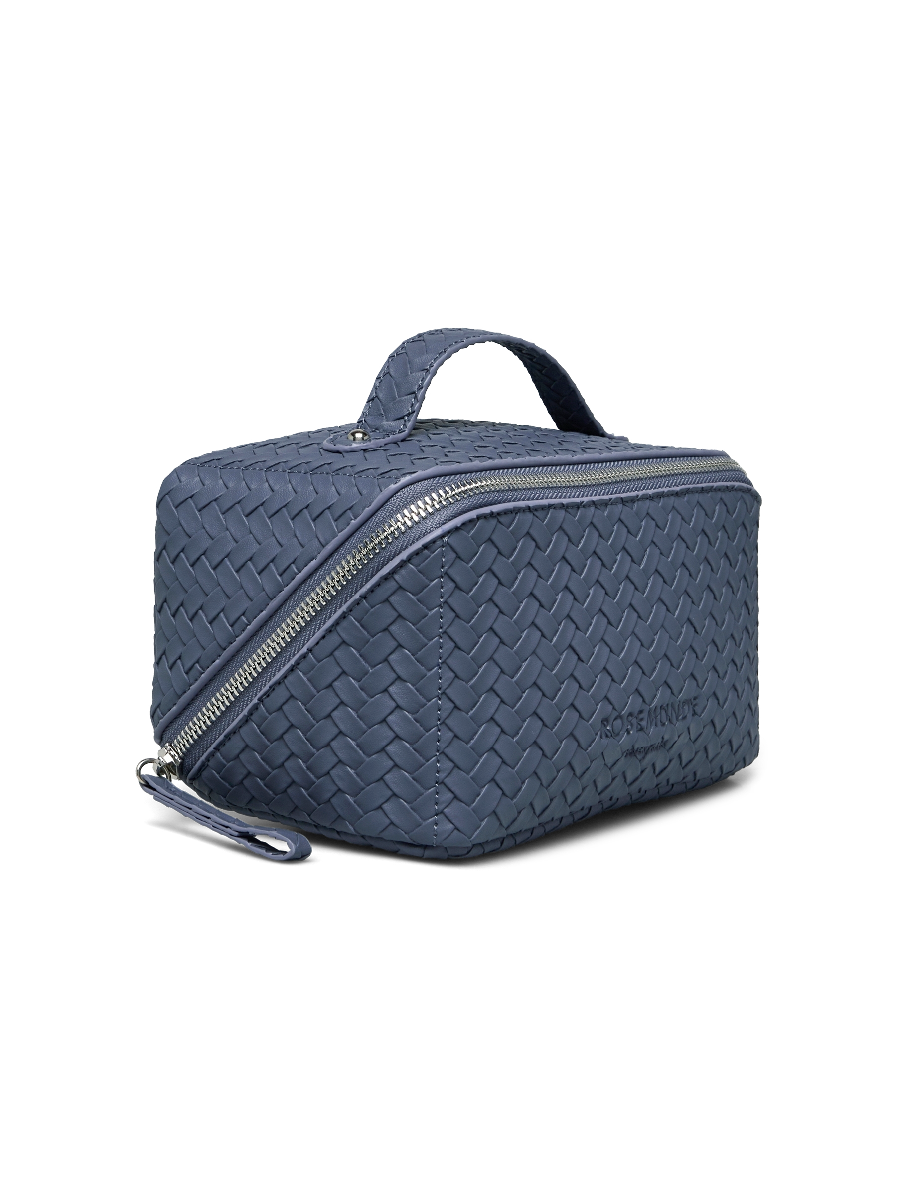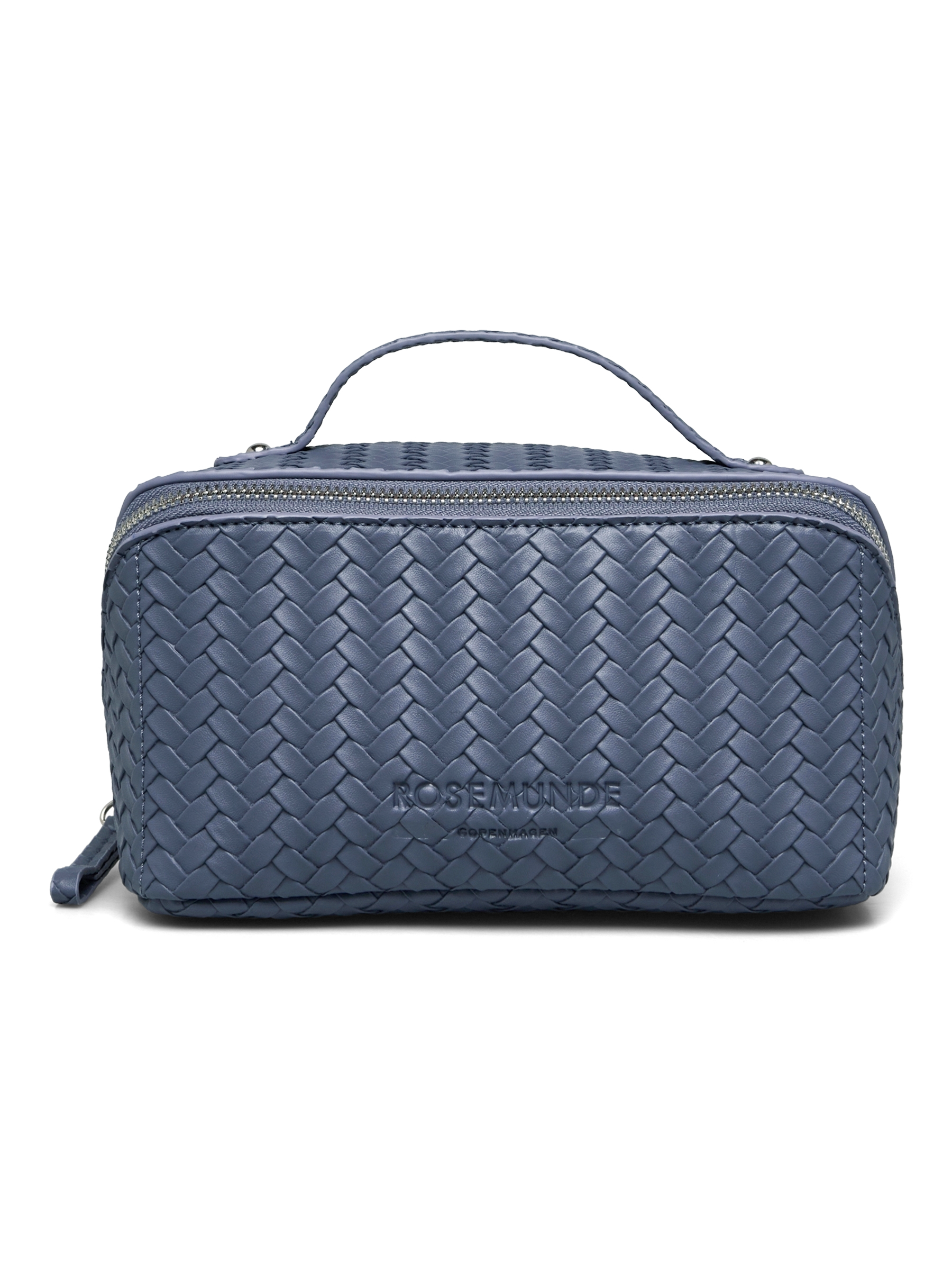 Denne elegante og praktiske toilettaske fra Rosemunde er designet med et smukt fletmønster, der giver et luksuriøst og tidløst udtryk. Den flotte blå nuance tilfører et friskt og feminint touch, mens lynlås, bærehank og rummelig indvendig plads gør tasken perfekt til både hverdag og rejser – ideel til makeup, smykker eller små toiletartikler.