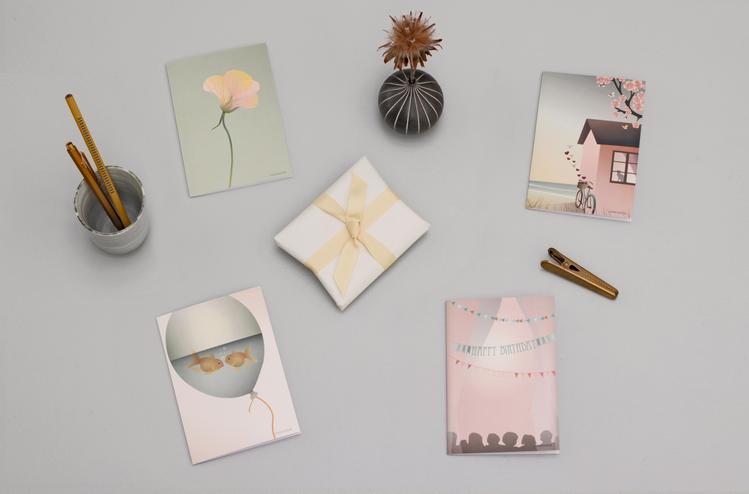 Materialer: Kortene er trykt i Danmark på 350 gram silkematt. C6 konvolutten er Multi Design. Farve: naturel er lavet i 100 gr. FSC®-certificeret Munken papir. (SCS-COC-005763-BS).