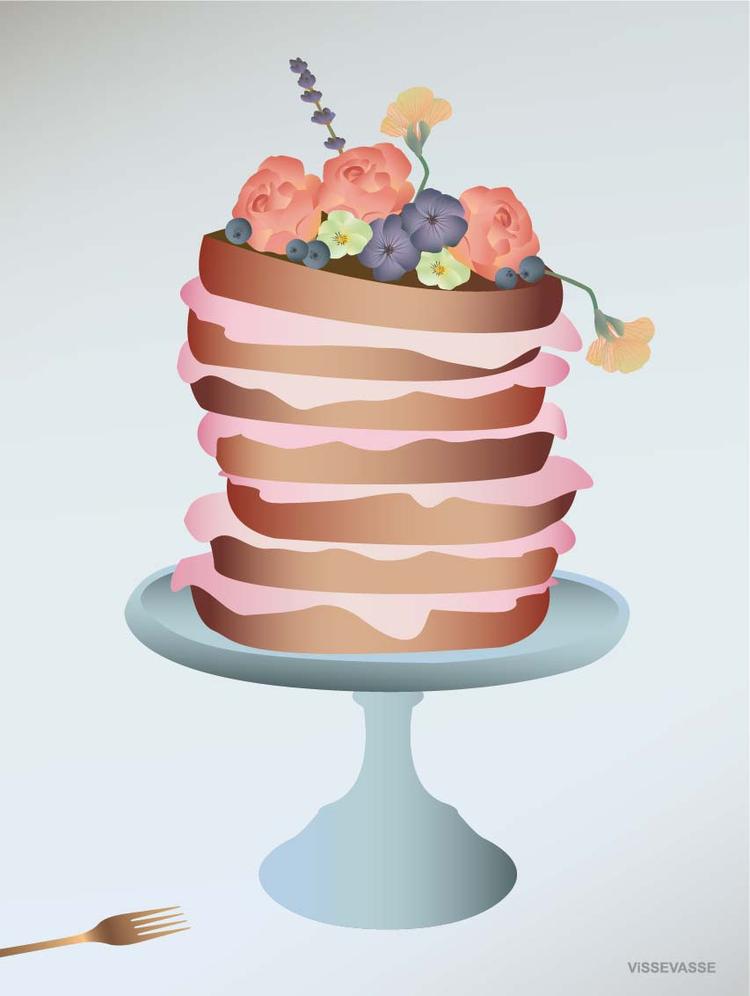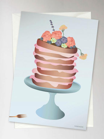 Et virkelig smart fødselsdagskort, der illustrerer et tårn af bløde lagkagebunde og en luftig flødeskumscreme med friske bærer og toppet med spiselige blomster, som både pynter og smager godt. Når det åbnes op er der masser af plads til både tekst og kærlige hilsener. Konvolutten medfølger til A5 størrelse.