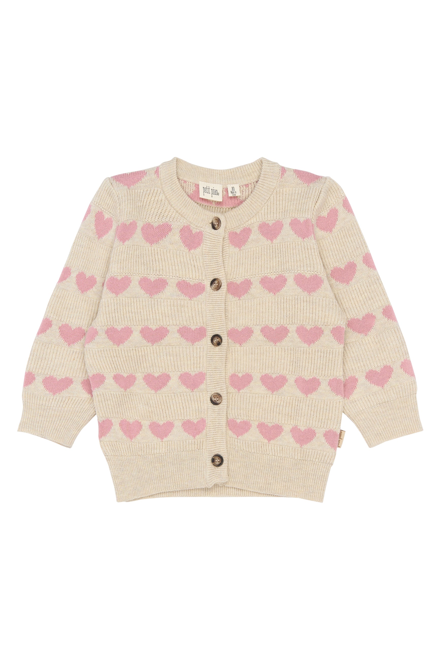 Petit Piao - PPElia - Cardigan med hjerter, beige