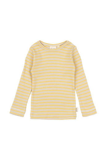 Petit Piao - Fin langærmet t-shirt med striber, gul/offwhite