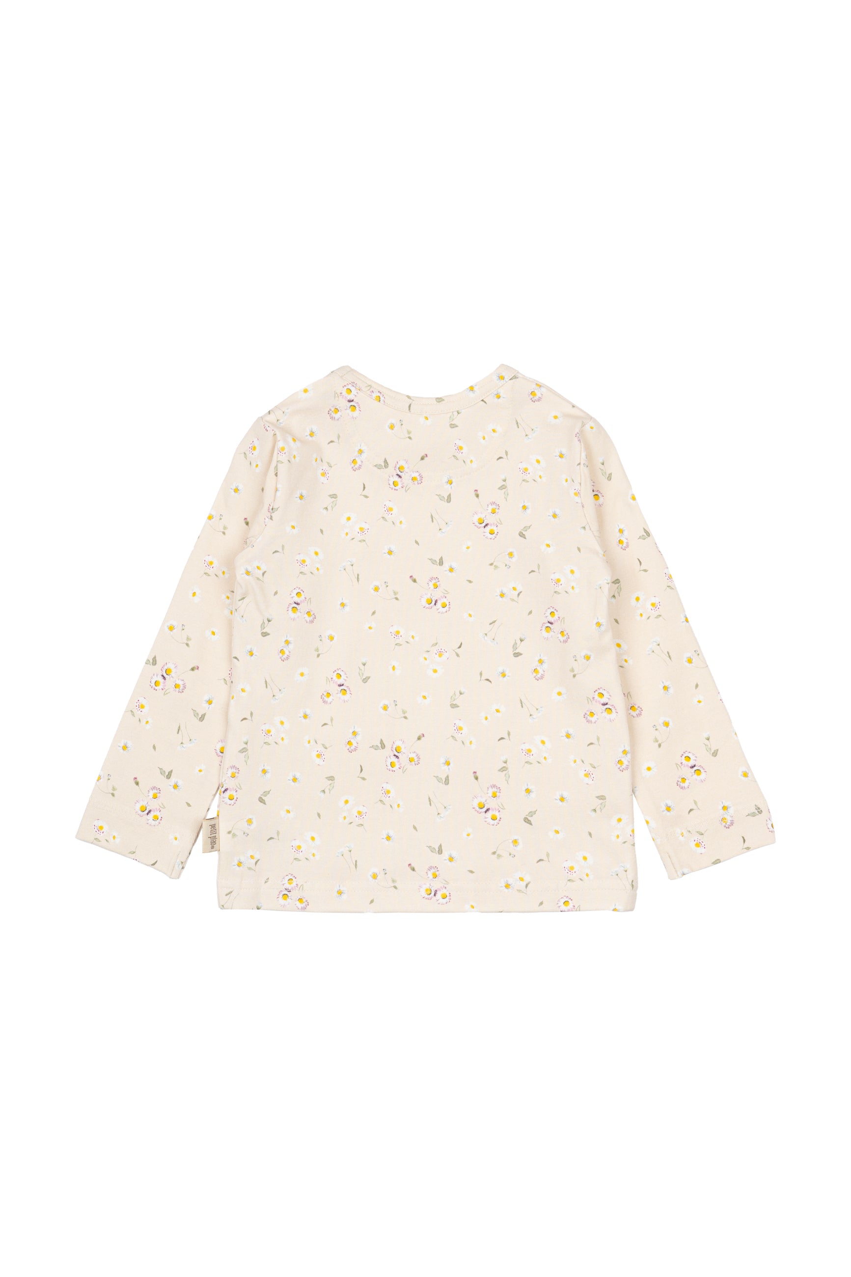 Denne langærmede t-shirt fra Petit Piao i farven Offwhite med det smukke Bellis mønster er både blød, strækbar og perfekt til hverdagsbrug. Fremstillet i en skøn blanding af 95% bomuld og 5% elastan, hvilket sikrer en behagelig pasform og optimal bevægelsesfrihed.