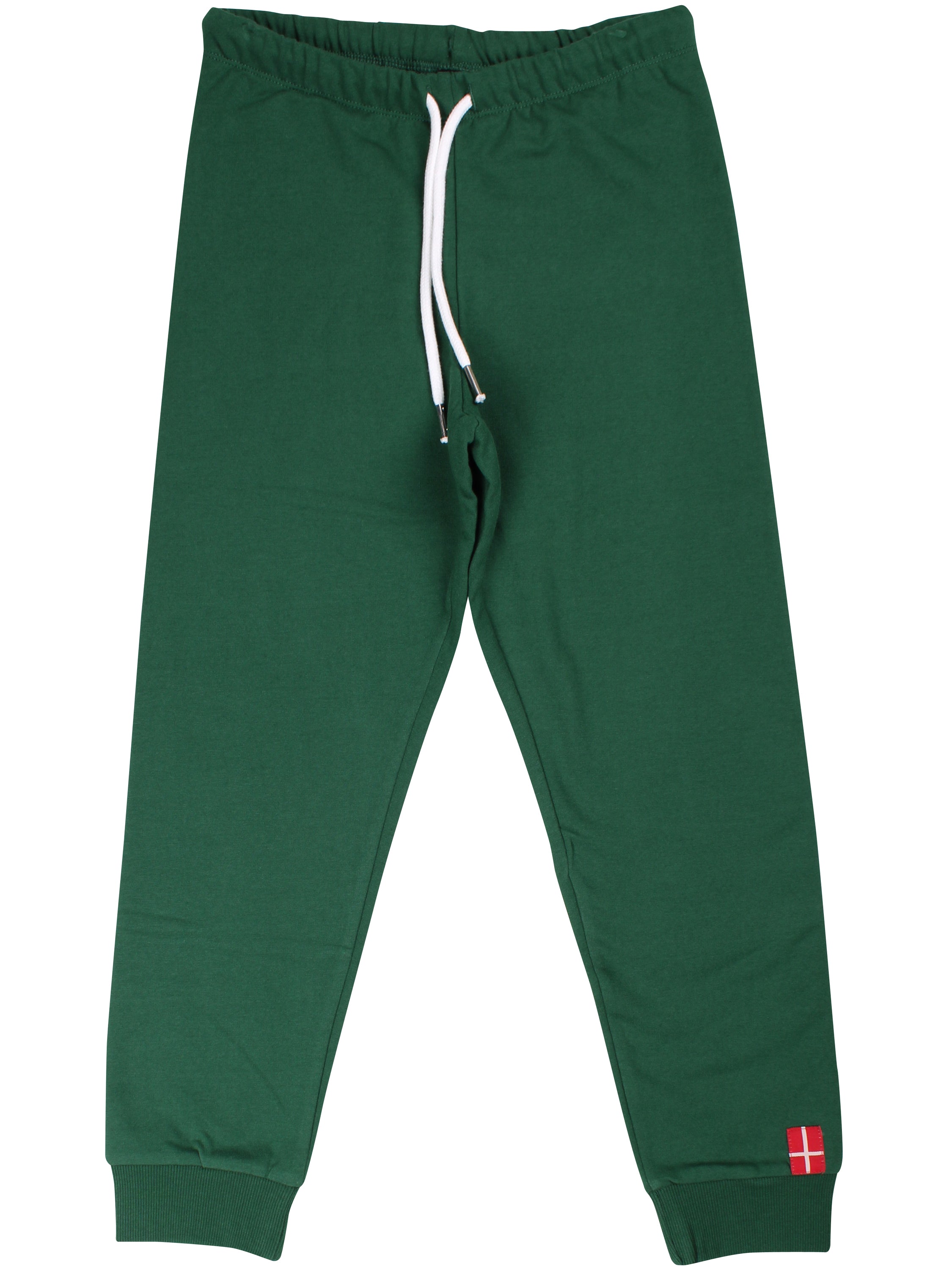 Super lækre sweatpants til børn i en flot grøn farve og en dejlig blød og elastisk sweat-kvalite. Bukserne er børstet på indersiden for at opnå ekstra blødhed mod huden og har elastik i livet og kan spændes yderligere ind med snøren i livet.
