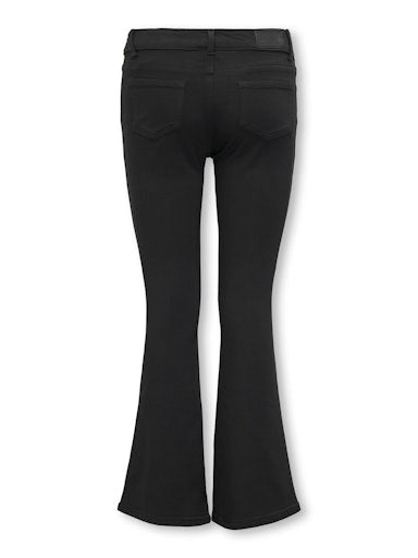 Opgrader din gaderobe med disse flared jeans fra Only Girls. Jeansene har en mellemhøj talje, der giver en flatterende pasform og et behageligt fit - perfekt til enhver anledning. De er designet med knappelukning og lynlås, hvilket giver et klassisk look og optimal komfort hele dagen.
