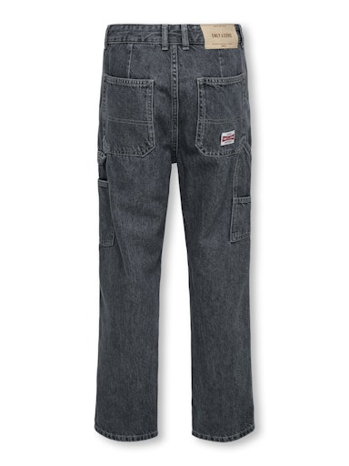 Mangler teenageren derhjemme også et par jeans, der både ser cool ud og kan holde til lidt af hvert? Så er disse carpenter jeans fra Only & Sons i farven "Grey Denim" det oplagte valg.