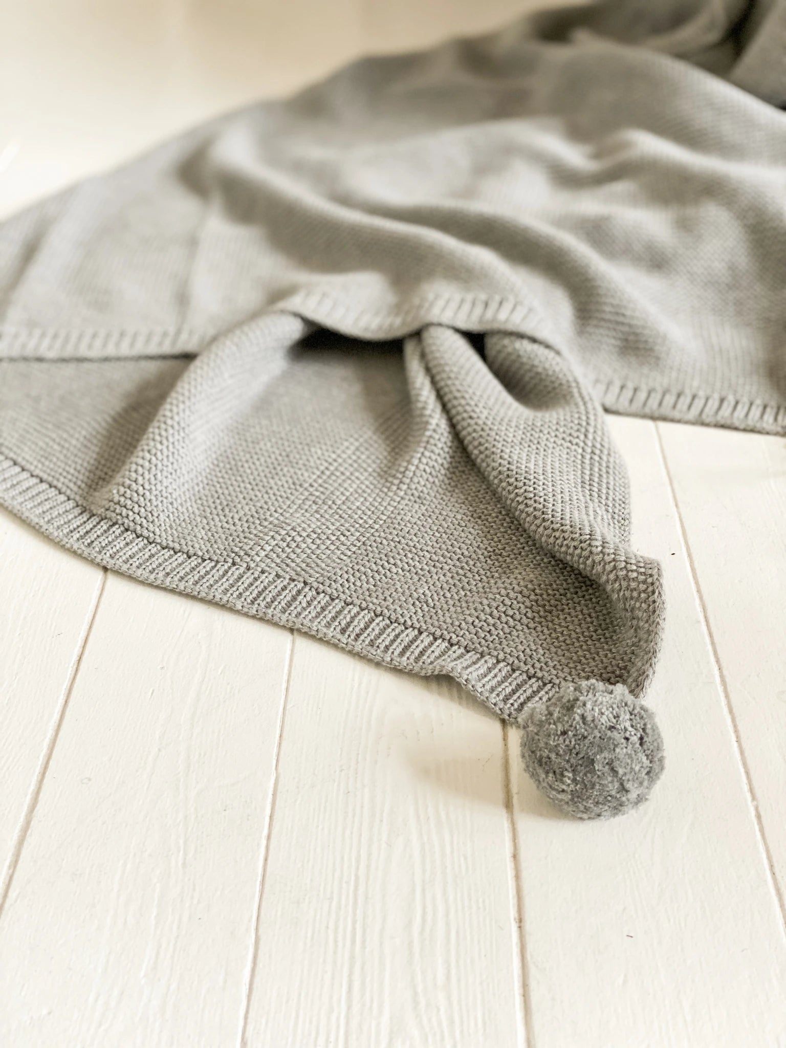 By LOHN - Strikket ALL ROUND plaid - GREY MELANGE - med pom-pom'er - 140 x 160 CM