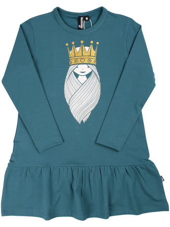 Kjolen har lange ærmer og crewneck. Børnetøj fra Danefæ er af høj kvalitet og lavet til at gå i arv, så kjolen kan vaskes igen og igen og igen og stadig holder sig flot. Pasformen er blød og behagelig og giver masser af plads til leg og bevægelse. Samtidig er kjolen nem at tage af og på.