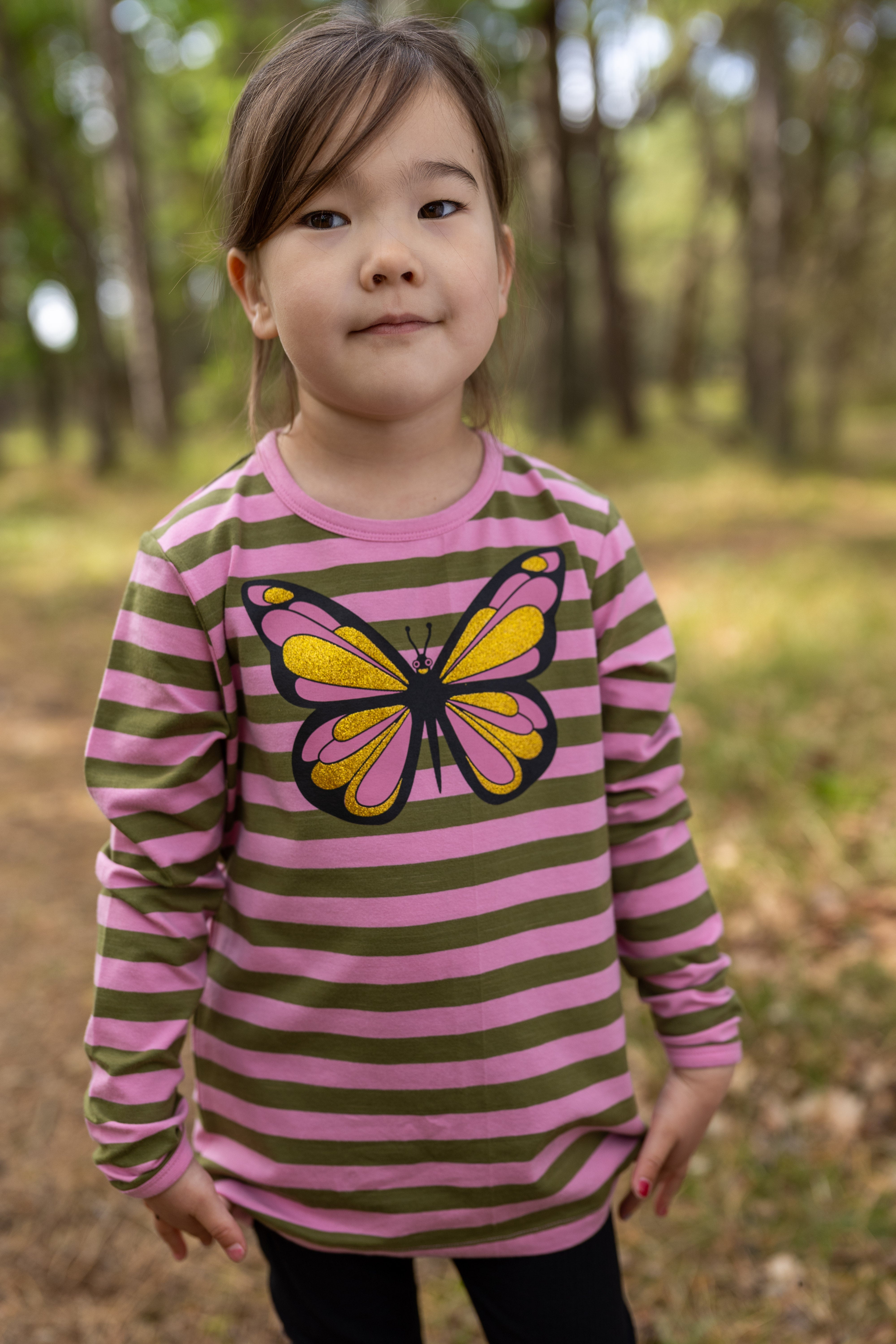 Danefæ DYR - Dyrroar - Langærmet med sommerfugl, rosa/oliven