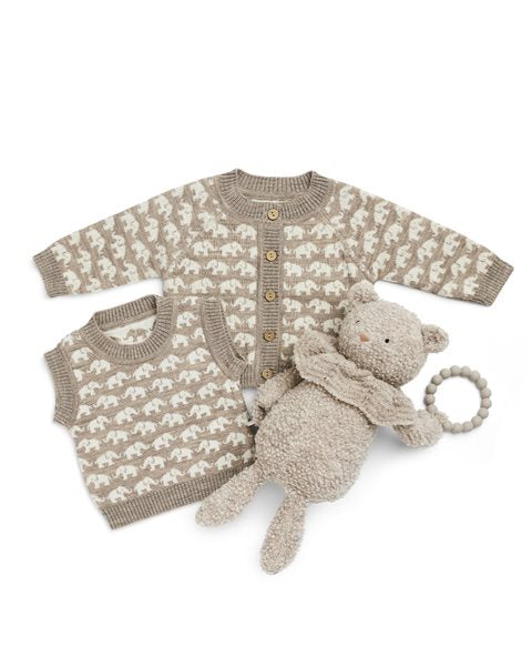 Smallstuff - Sød merino-cardigan med elefanter, beige