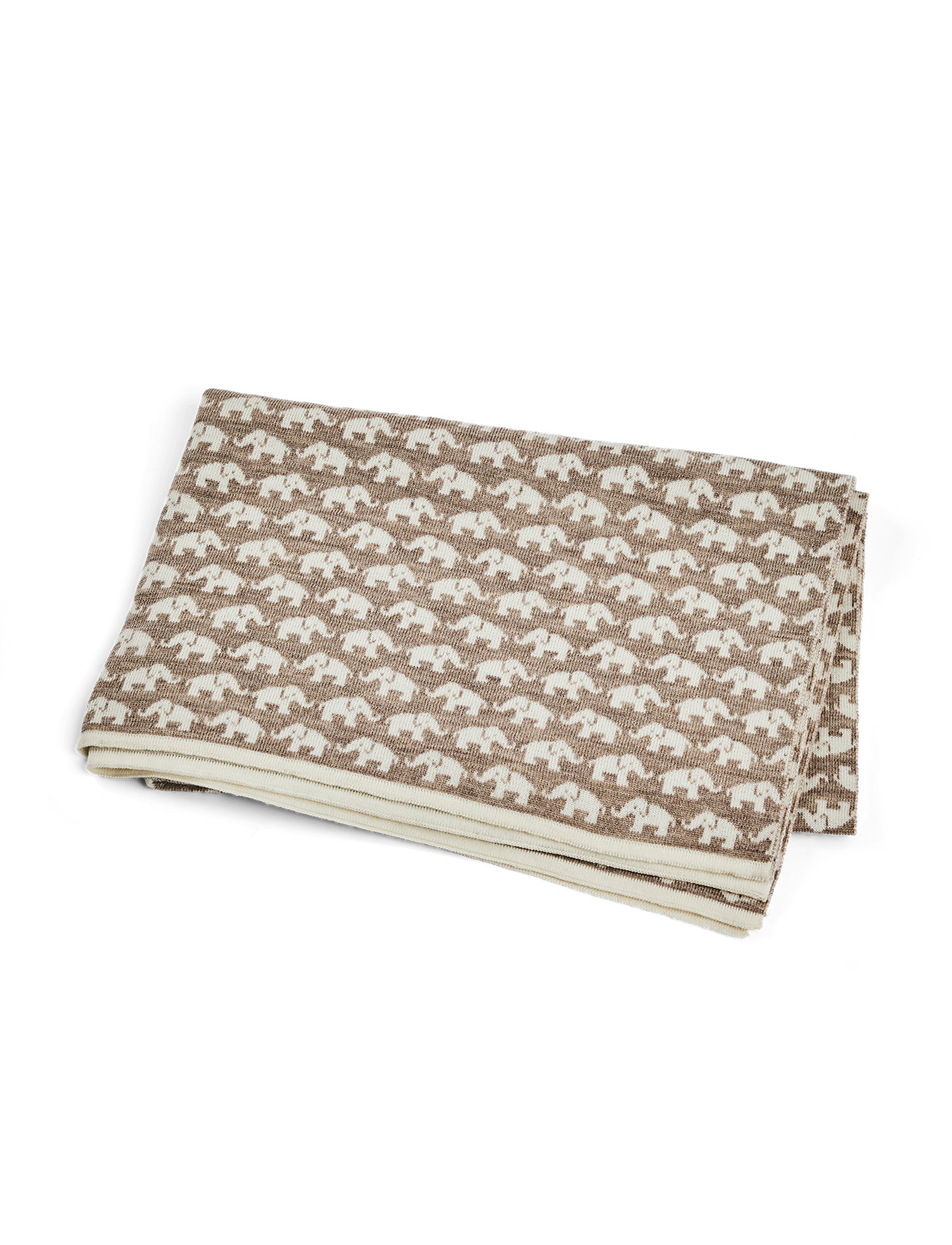 Smallstuff - Merino babytæppe med elefanter, beige