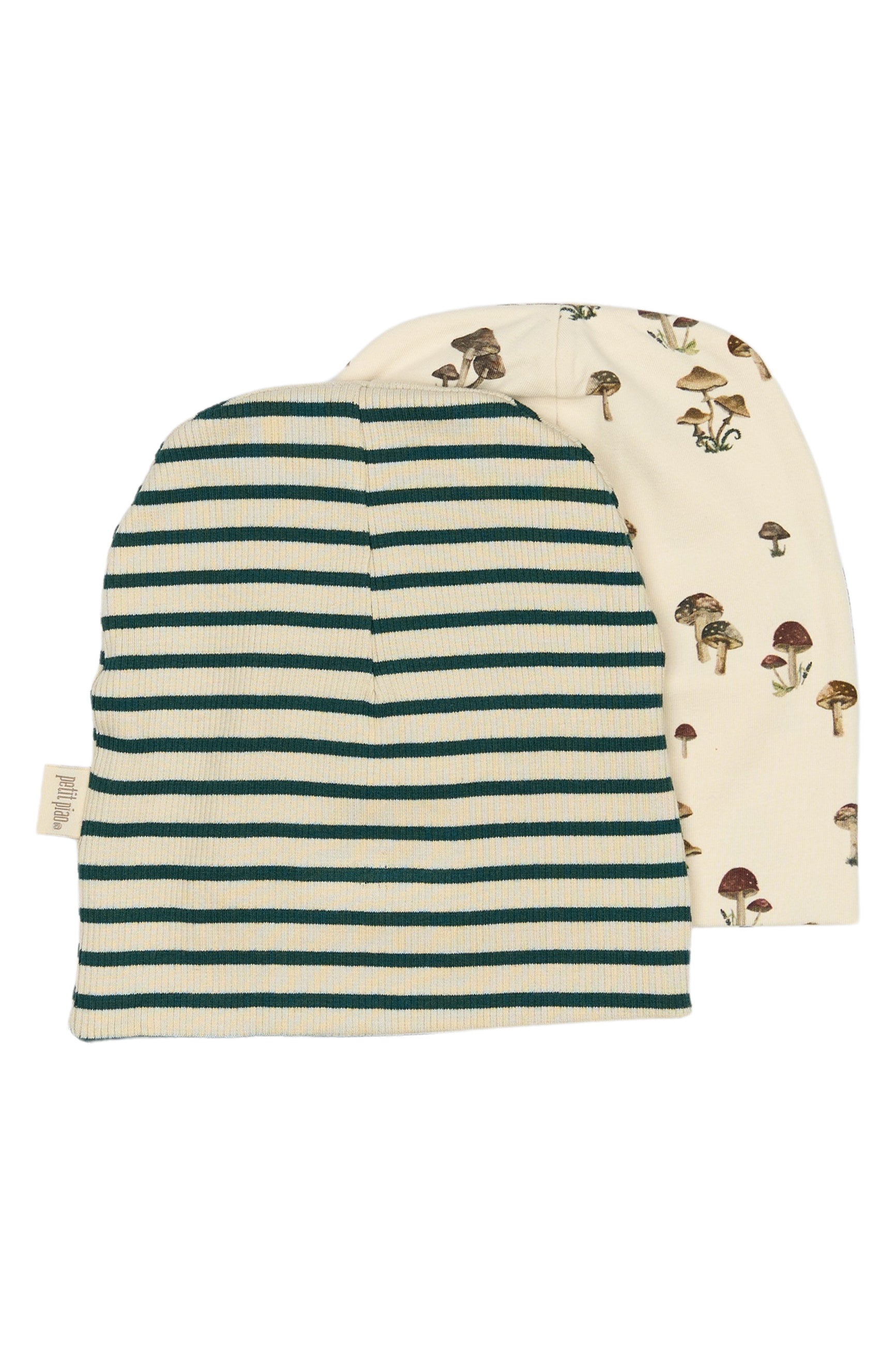 Denne 2-pak bløde jerseyhuer fra Petit Piao i farven funkgi/striber er et must-have til de mindste. Huerne er fremstillet i en blød og strækbar blanding af 95% bomuld og 5% elastan, hvilket sikrer en behagelig pasform og god komfort.
