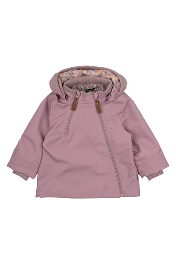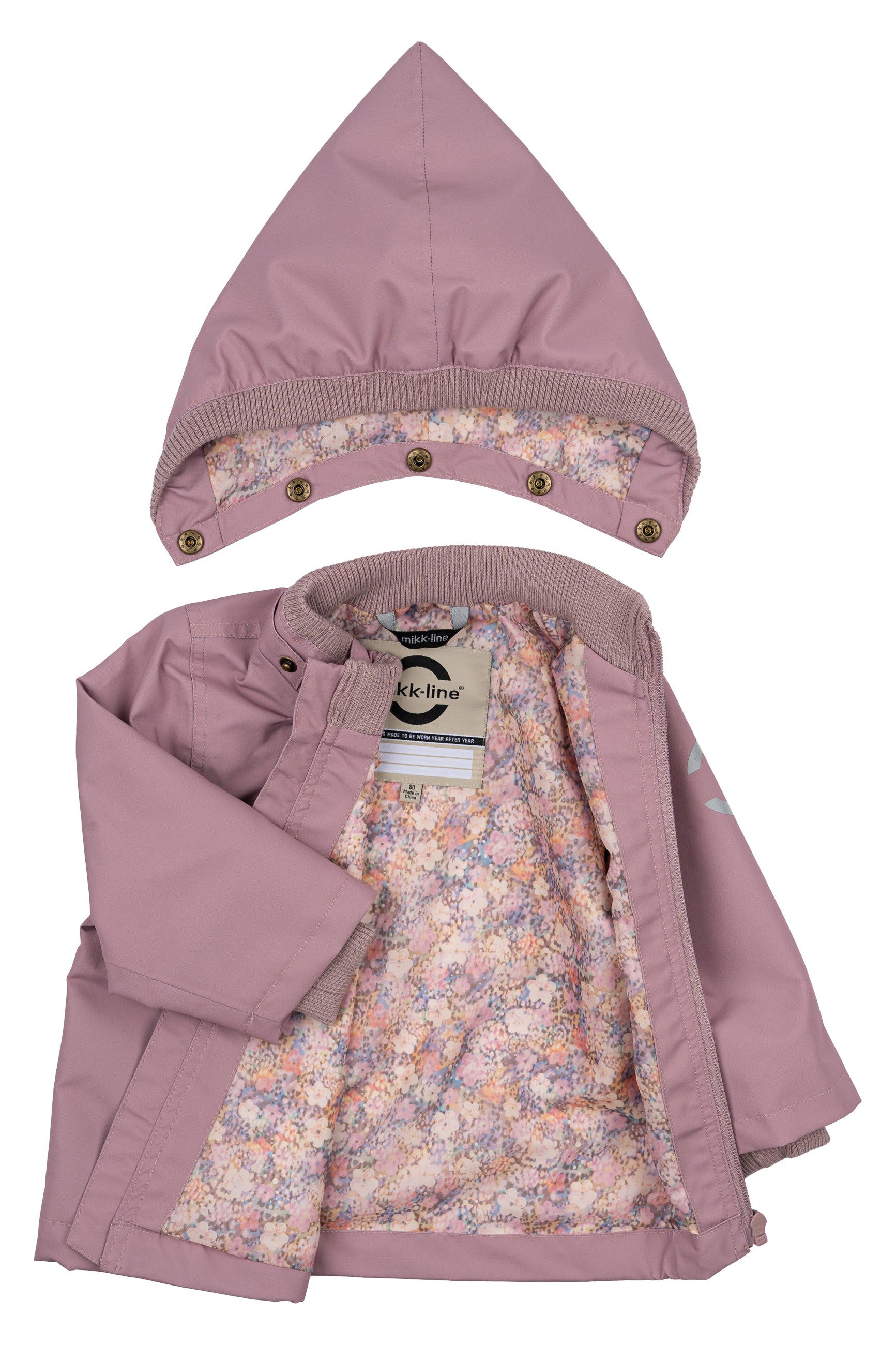 Denne fine babyjakke fra Mikk-Line i farven Woodrose er både praktisk, blød og perfekt til overgangsperioder. Fremstillet i 100% genanvendt polyester, hvilket gør den bæredygtig, slidstærk og let at bevæge sig i.