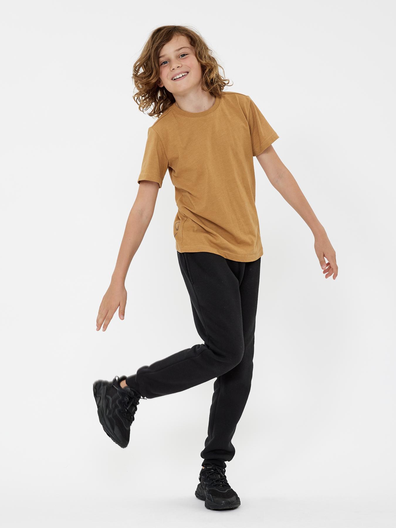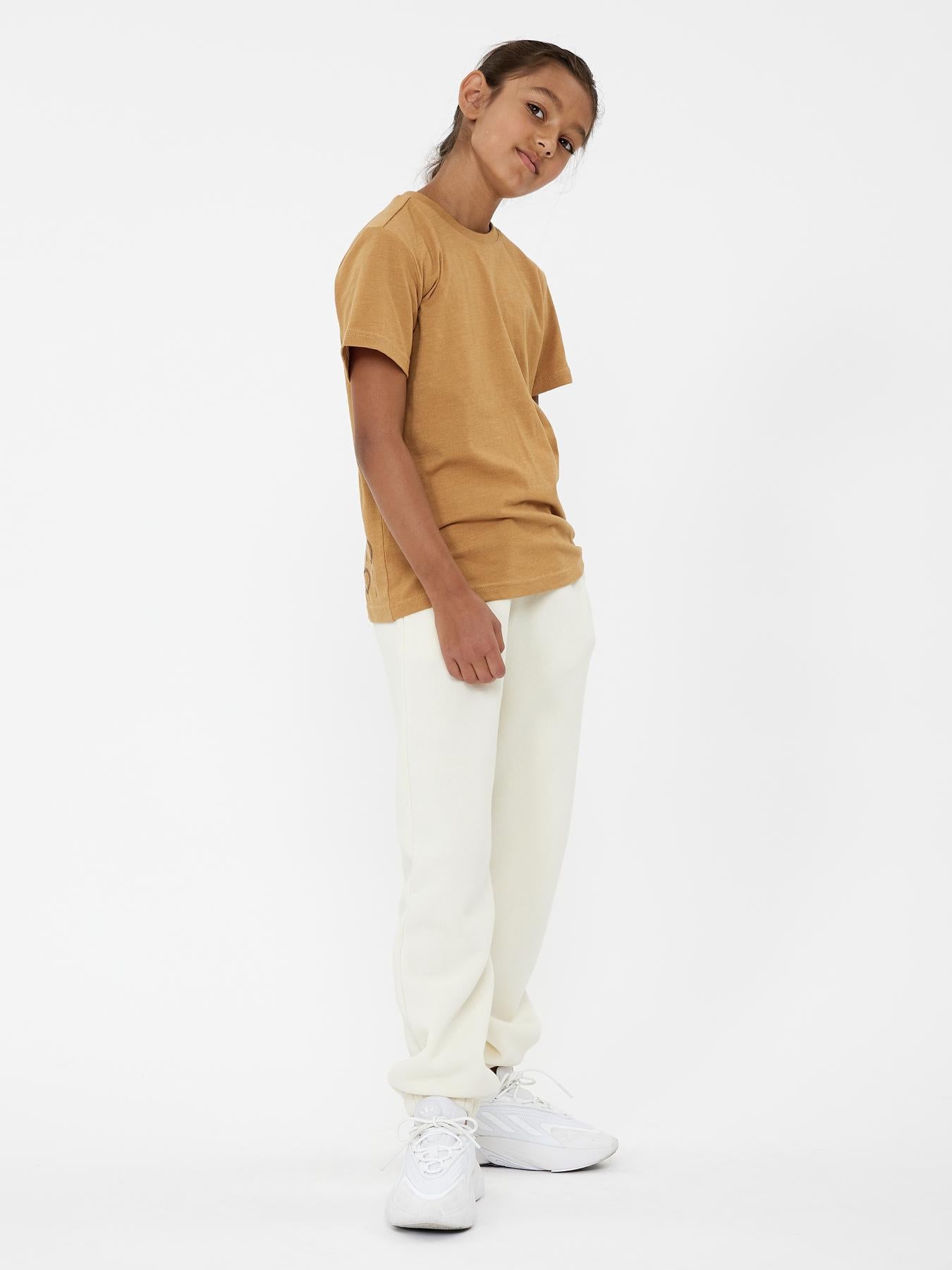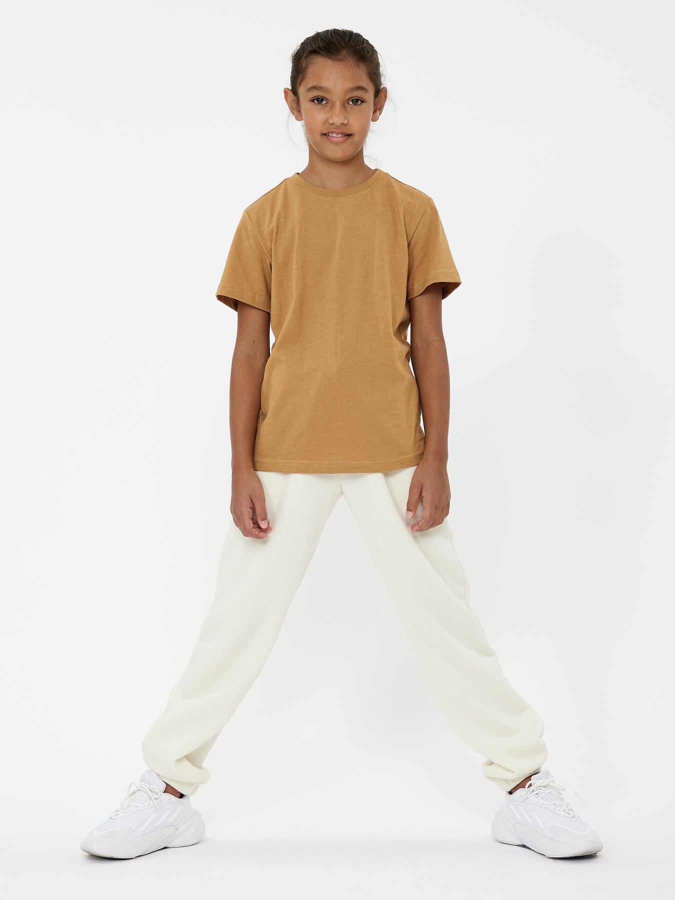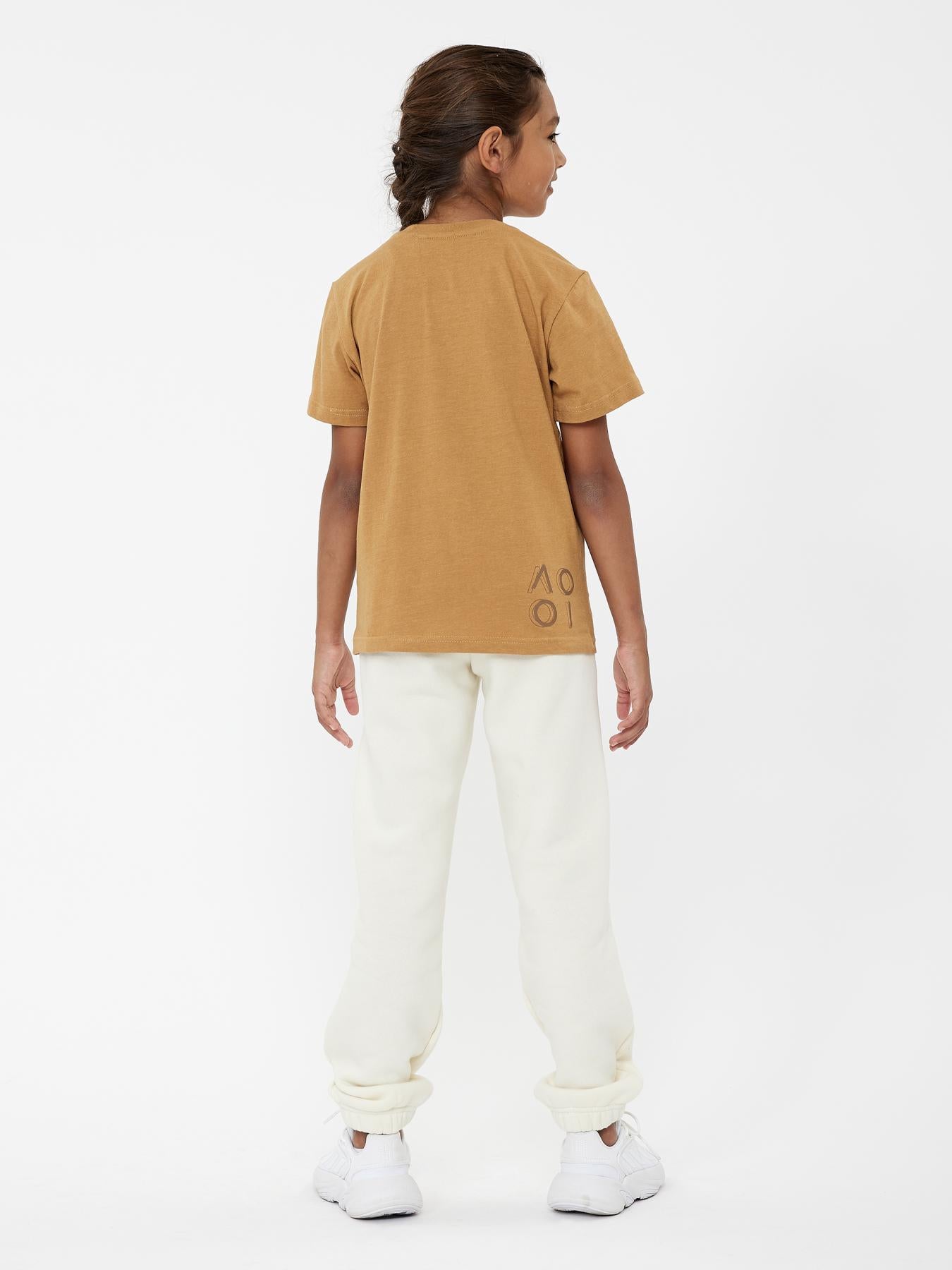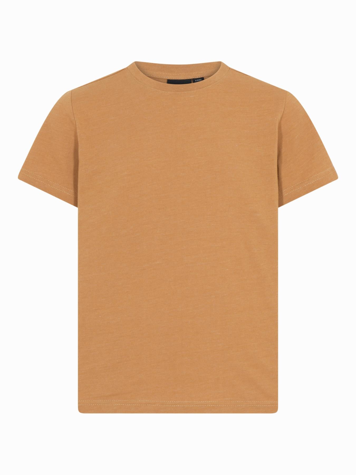 Flot T-shirt fra KABOOKI i Caramel Brown - fin karamel brun - både til piger og drenge. Flot og lækker med en ribkant i halsudskæringen.