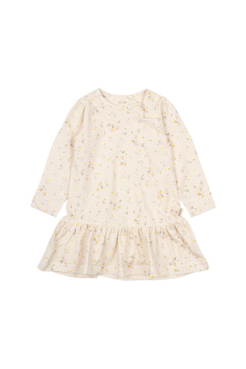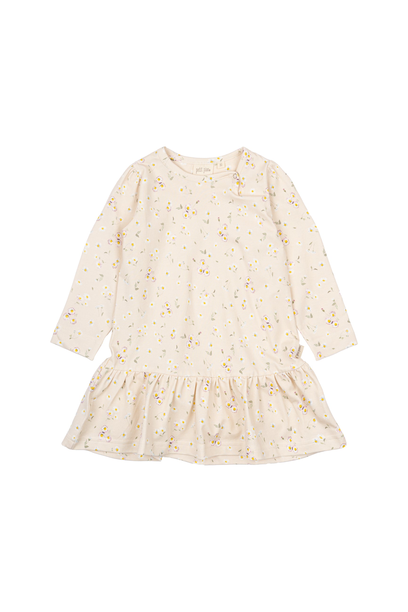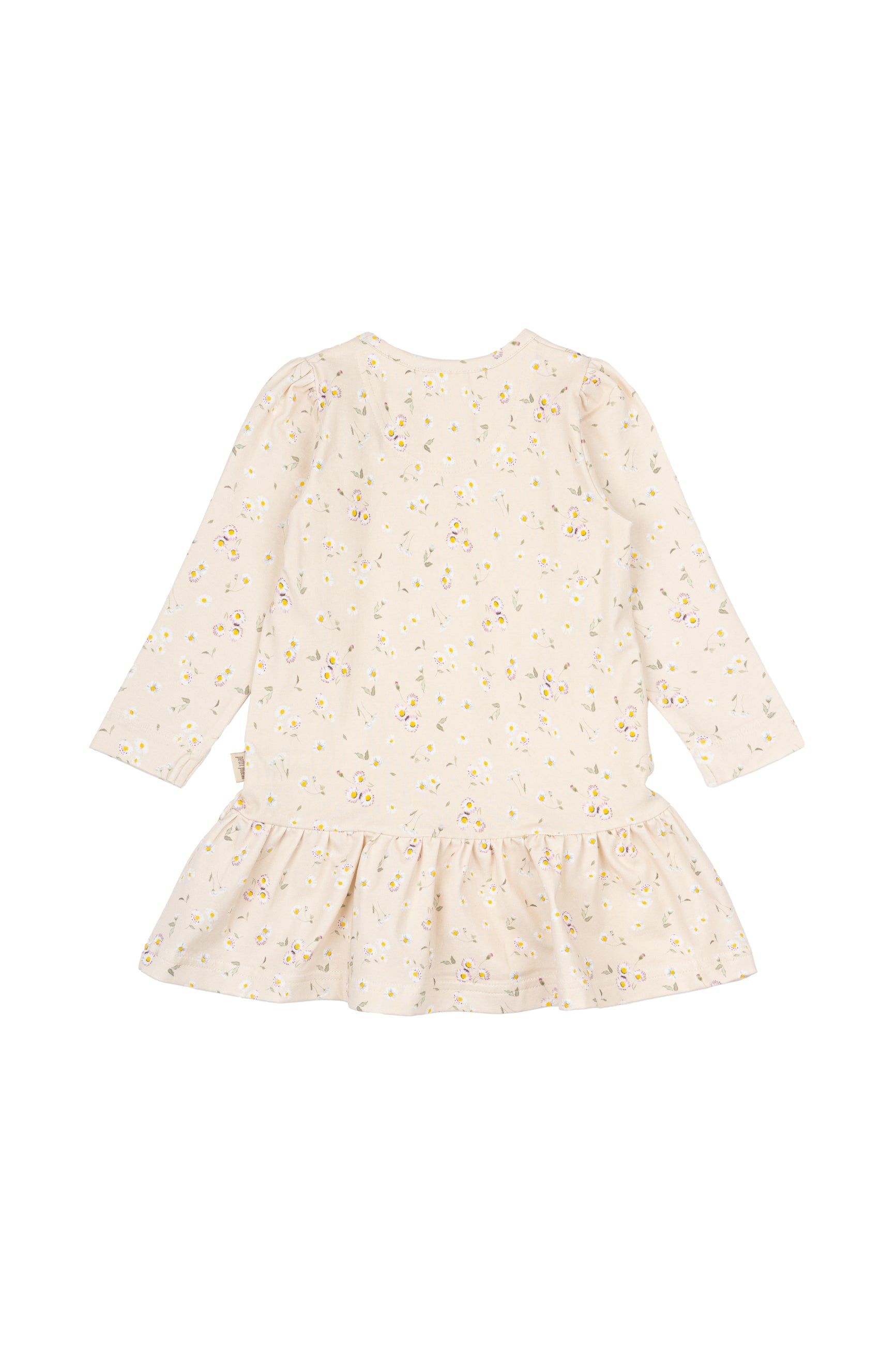 Denne smukke kjole fra Petit Piao i farven Offwhite med det fine Bellis mønster er både blød, strækbar og perfekt til hverdagsbrug. Fremstillet i en skøn blanding af 95% bomuld og 5% elastan, hvilket sikrer en behagelig pasform og god bevægelsesfrihed.