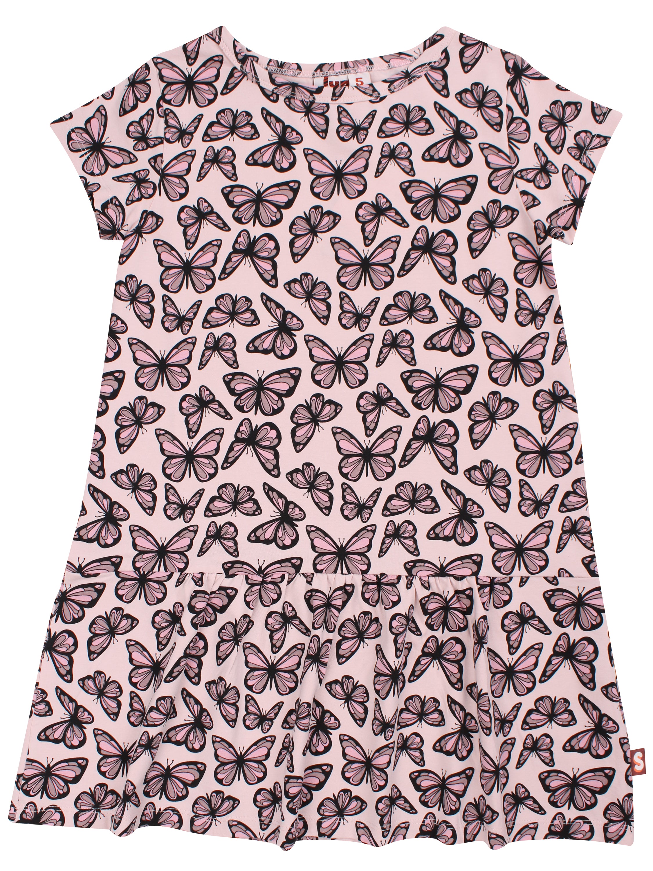 Denne bløde kjole fra Danefæ DYR i farven Light Rose med et fint sommerfugleprint, som indbyder til leg og fantasi. Med sit lette og behagelige snit er den oplagt til hverdagsbrug – og det strækbare bomuldsjerseymateriale (95% bomuld / 5% elastan) sikrer en god pasform og fuld bevægelsesfrihed.