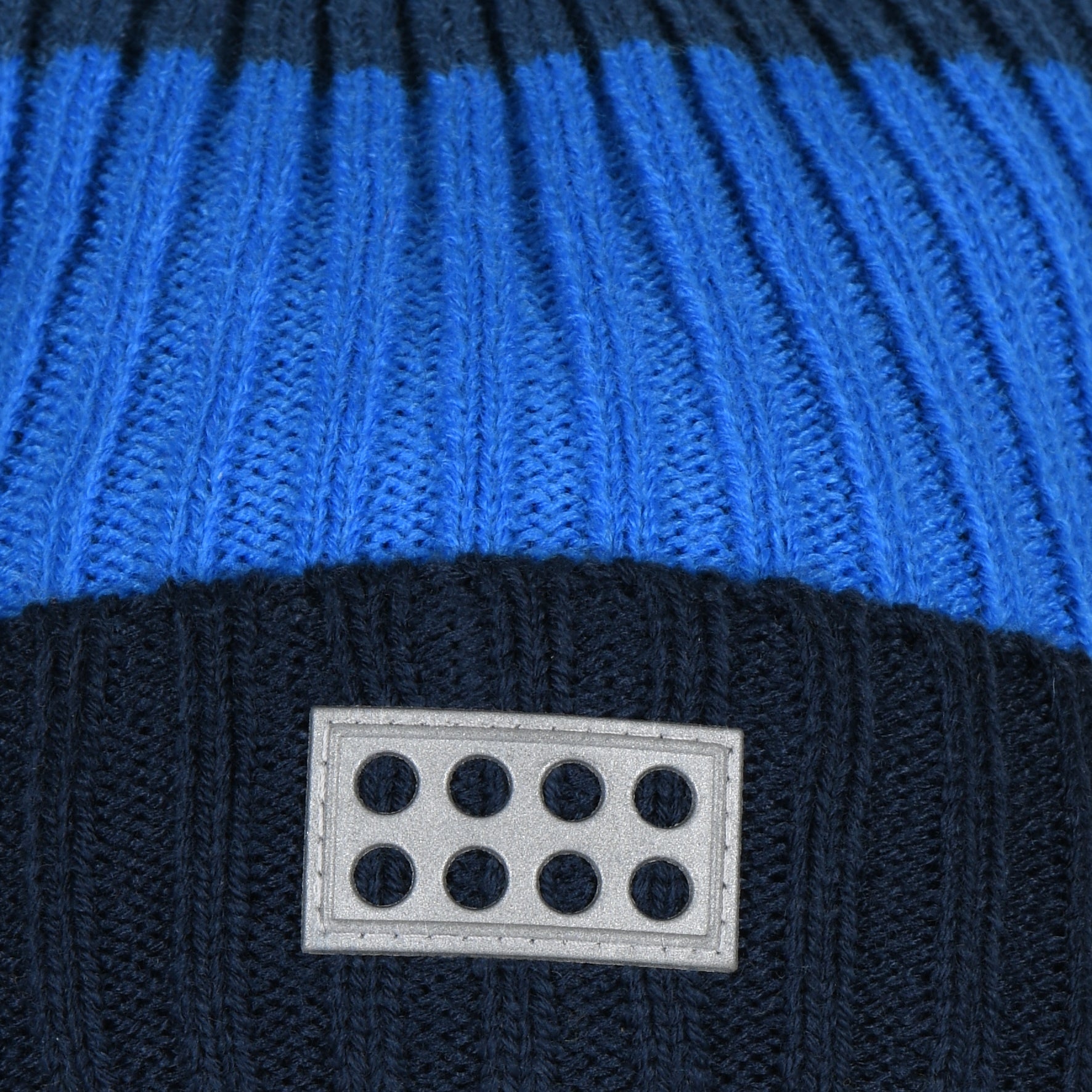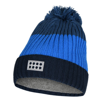 Varm strikket vinterhue med striber fra LEGO WEAR i Blue - flot blå.