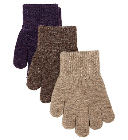 Mikk-Line - 3-pak Magic-handsker m. Lurex - Nightshade/Chocolate Chip/Doeskin