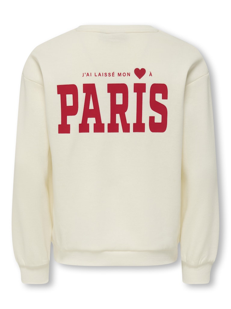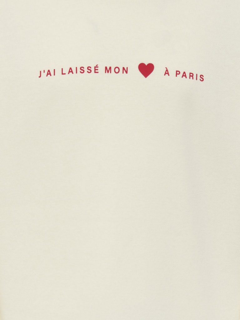 Denne sweater er for alle, der elsker Byernes By, altså Paris - og hvem gør ikke? Med den fine røde tekst: "j'ai laissé mon a Paris (Jeg efterlod mit hjerte i Paris)" på ryg og bryst som fin kontrast til den hvide sweater er der ikke et øje tørt.  Dette er den perfekte sweater til hverdagen, men kan nemt bruges til finere anledninger.