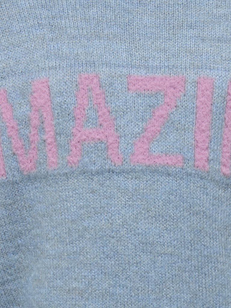 Bring lidt ekstra glæde og farve ind i hverdagen med denne skønne sweater fra Only Mini. Den bløde strik i den nedtonede, blå nuance ved navn Arona, giver et varmt og hyggeligt udtryk, mens AMAZING-motivet, i den fineste rosa-nuance, skaber noget colorblocking og tilføjer et legende element.