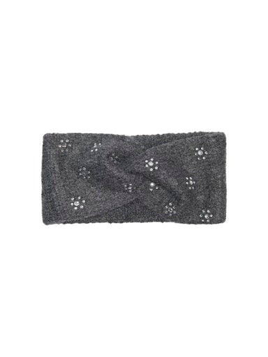 Denne variant i farven Dark Grey Melange er lavet i et blødt og behageligt materiale der føles rart mod huden. Dens små rhinsten på fronten tilføjer et feminint og glitrende touch, der gør pandebåndet en snert mere elegant og personligt.