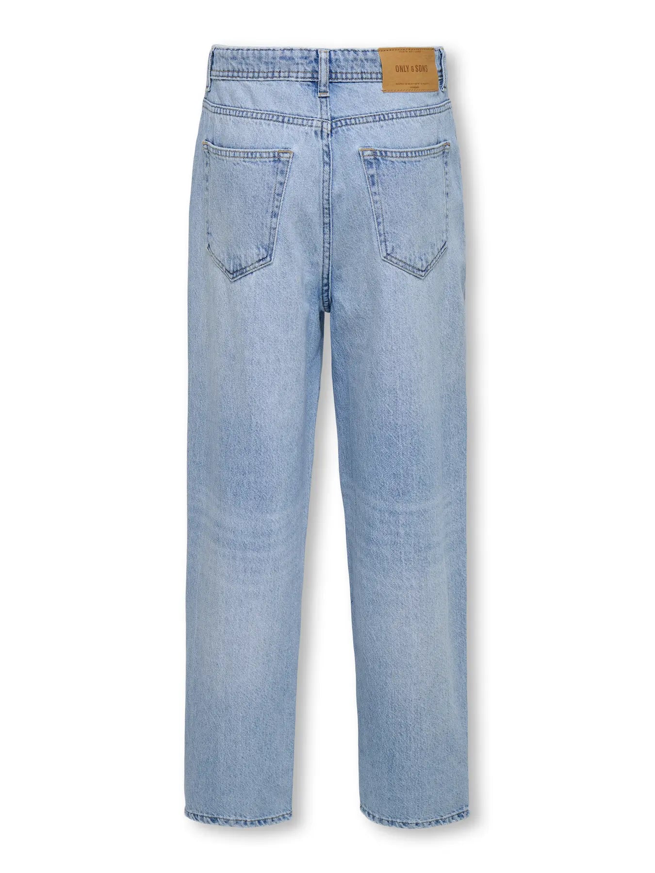 Disse jeans fra Only & Sons kommer i en flot lyseblå vask og er perfekte til et afslappet og moderne look. Jeansene har en løs pasform med lige ben og er designet med praktiske bæltestropper samt for- og baglommer, der gør dem både funktionelle og komfortable til hverdagsbrug. Den lyse vask skaber et trendy, udvasket denimlook, der er nemt at style med alt fra T-shirts til sweatshirts.
