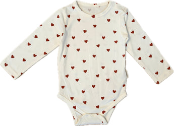 Bodystocking i en blød pointelle-strikning i økologisk bomuld med et sødt hjerteprint. Denne body har knapåbning ved skulderen så den er nem at få af og på. Det økologiske bomuld er ultra blødt for at sikre en god og fleksibel pasform, der følger barnets bevægelser.