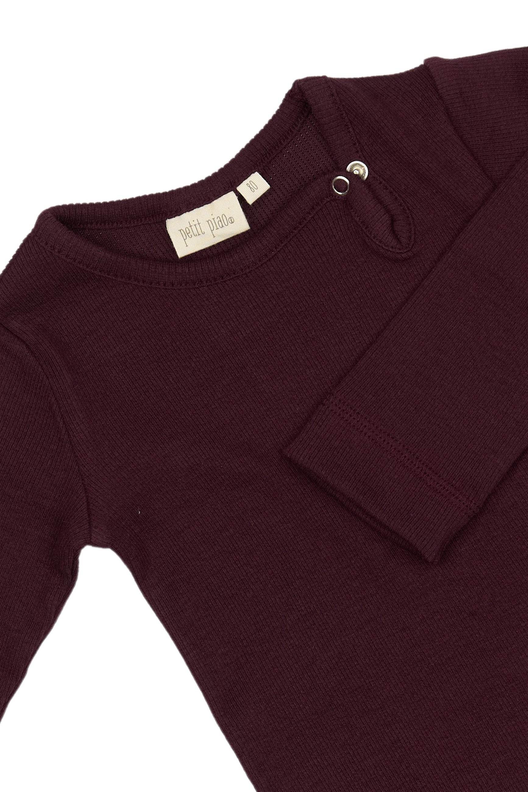 Denne langærmede body fra Petit Piao i den smukke farve Dark Grape er et must-have i barnets garderobe. Fremstillet i en blød og strækbar blanding af 48% økologisk bomuld, 48% modal og 4% elastan, der sikrer en behagelig pasform og optimal bevægelsesfrihed.