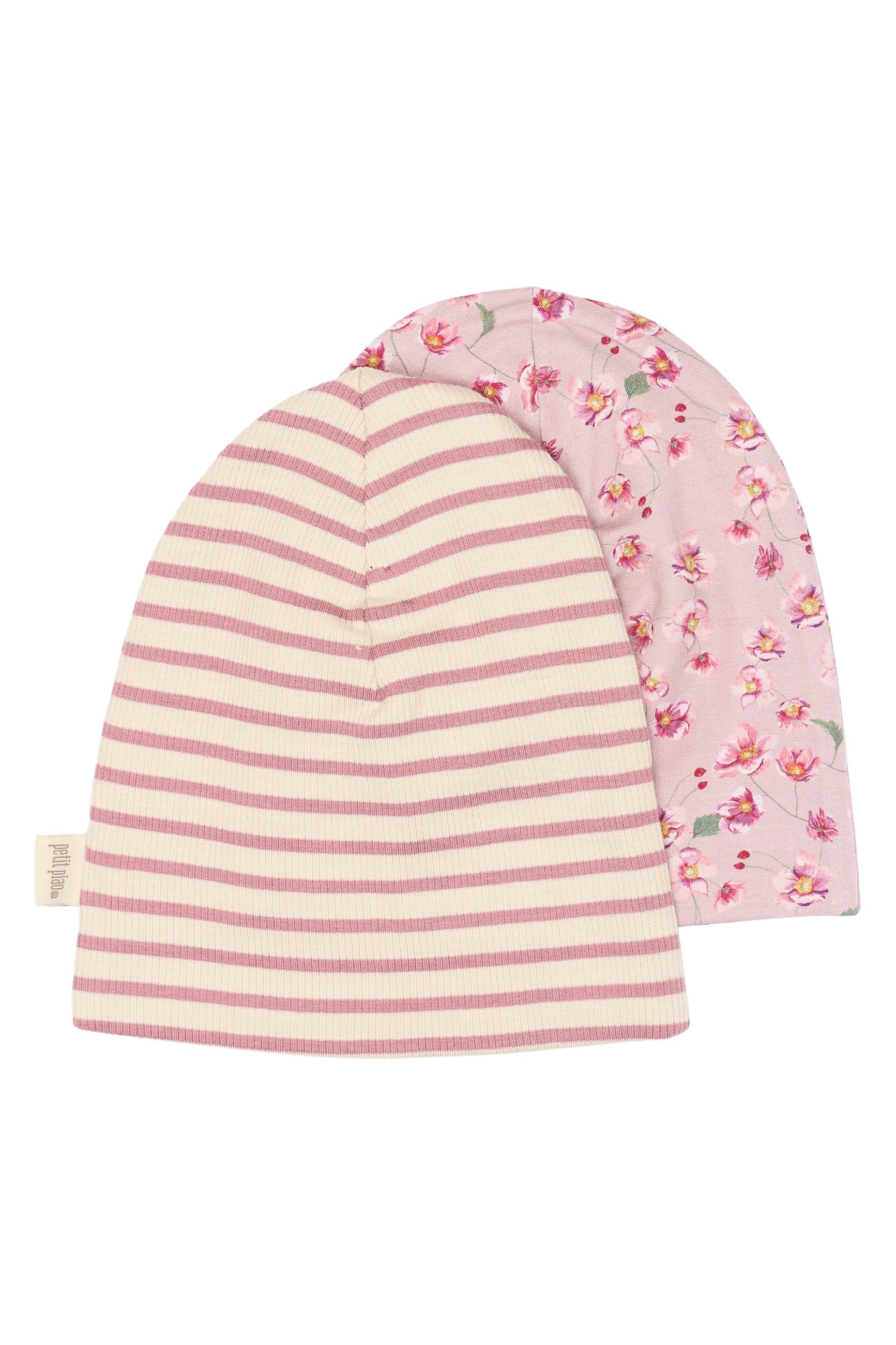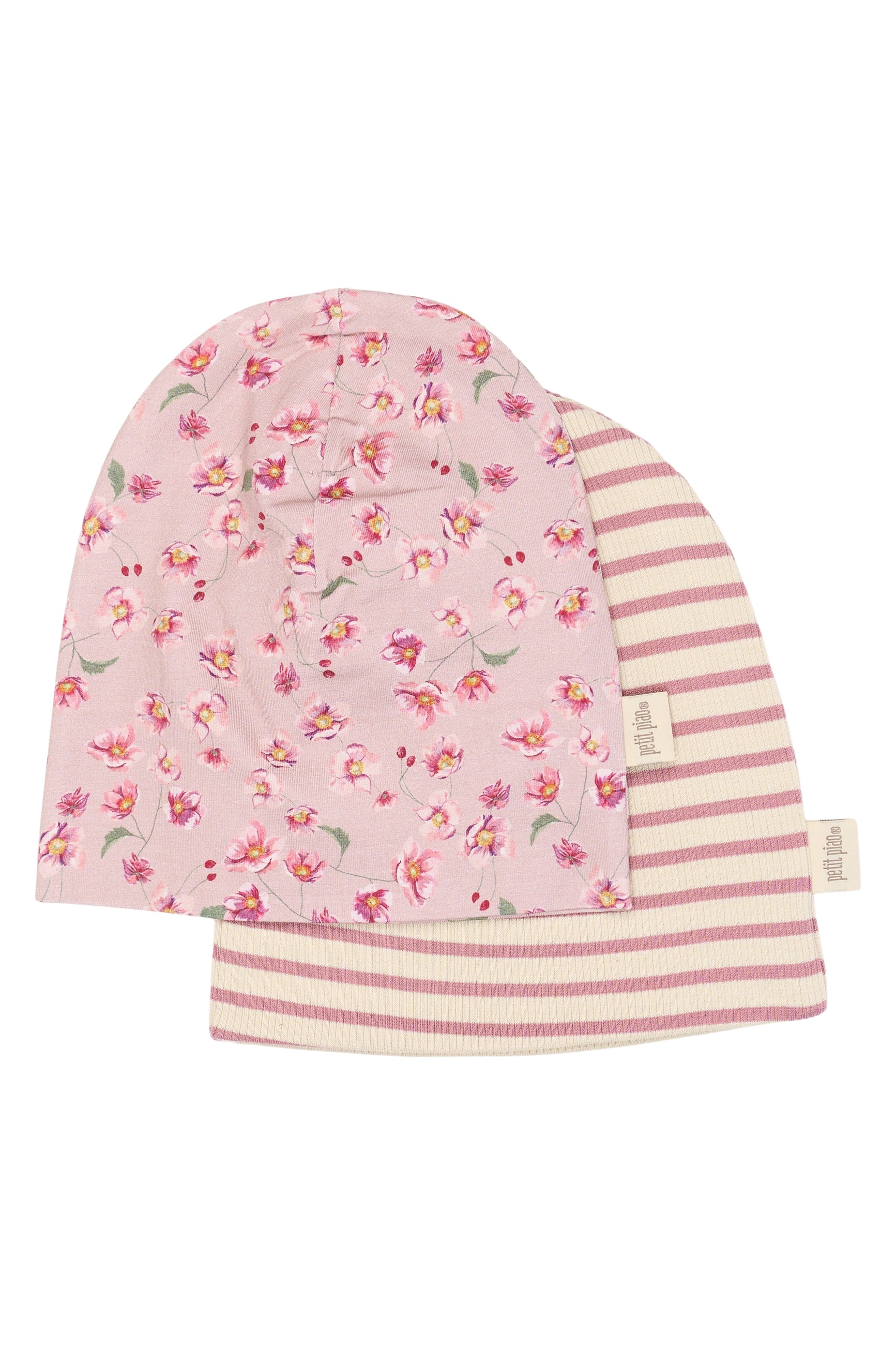 Petit Piao - 2-pak huer med blomster og striber, rosa