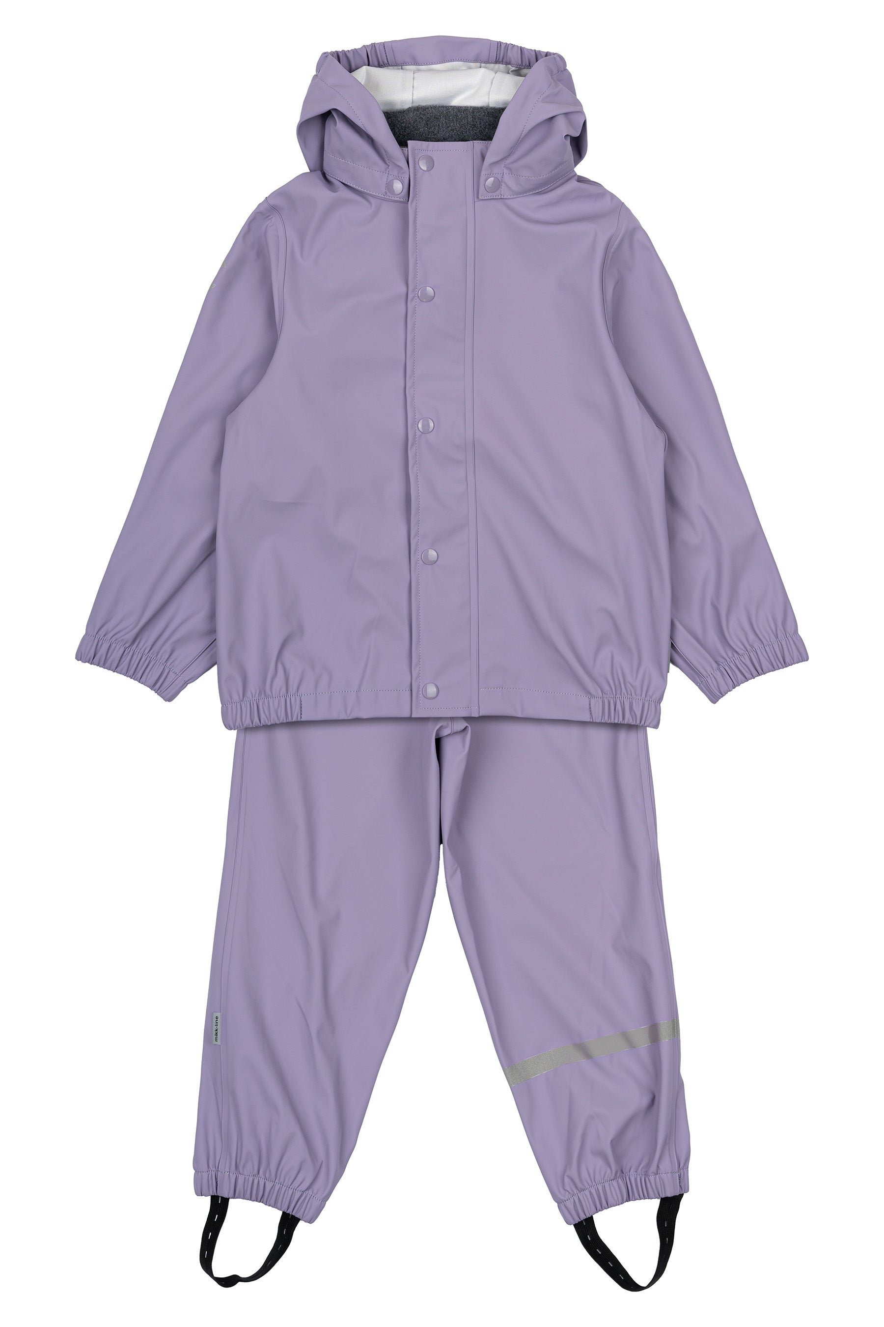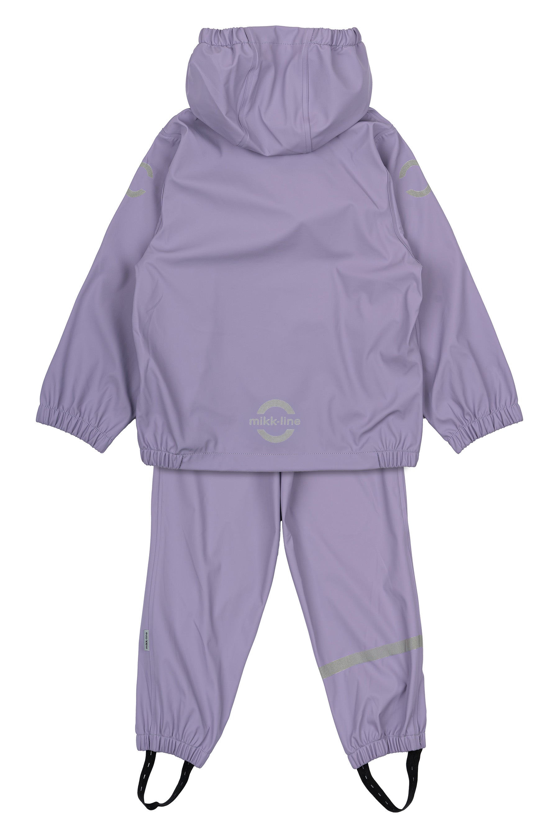 Dette klassiske regnsæt fra Mikk-Line i farven Dusk er både praktisk, slidstærkt og perfekt til regnfulde dage. Fremstillet i en kombination af 66% genanvendt polyester og 34% polyurethan, hvilket gør det vandtæt, fleksibelt og behageligt at bevæge sig i.