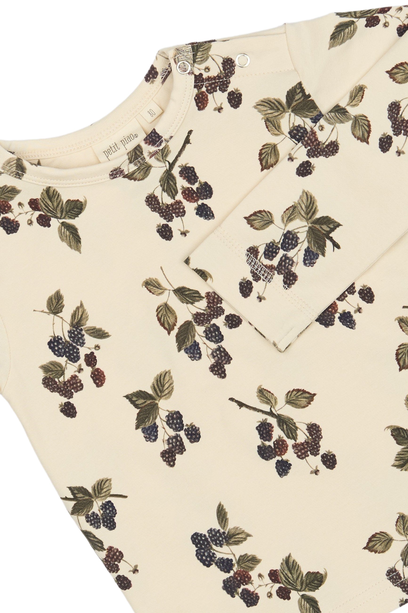 Petit Piao - Fin langærmet t-shirt med bær, beige