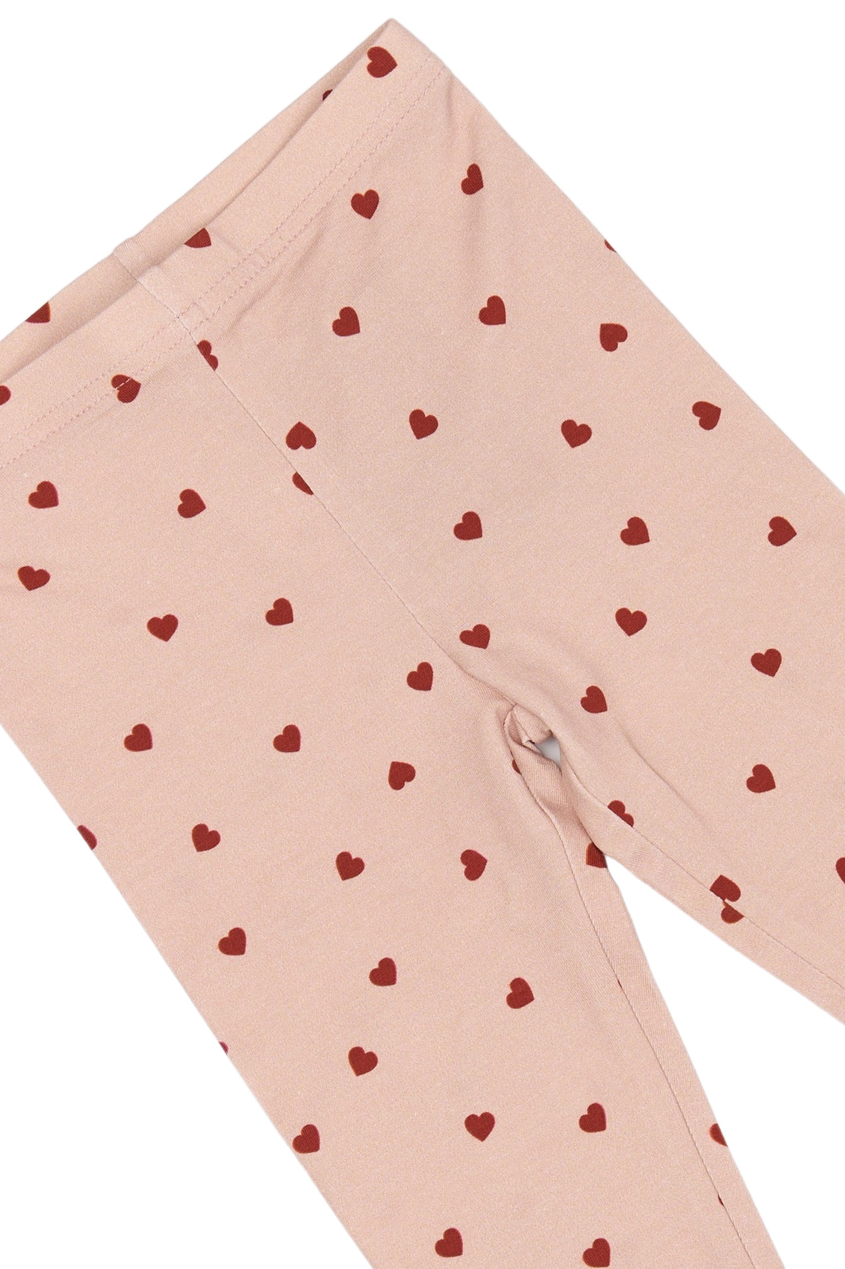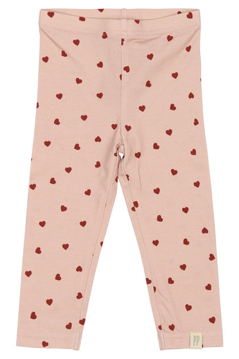 Disse søde leggings fra Petit Piao er lavet i en blød og strækbar kvalitet med et yndigt all-over hjerteprint i rødt på støvet rosa bund (Heart). Den tætsiddende pasform og elastiske talje gør dem behagelige at have på – perfekte til både hverdag og hyggelige lejligheder i efterårs- og vintersæsonen. Brug dem med en matchende body eller en lun strik for et fuldendt look.