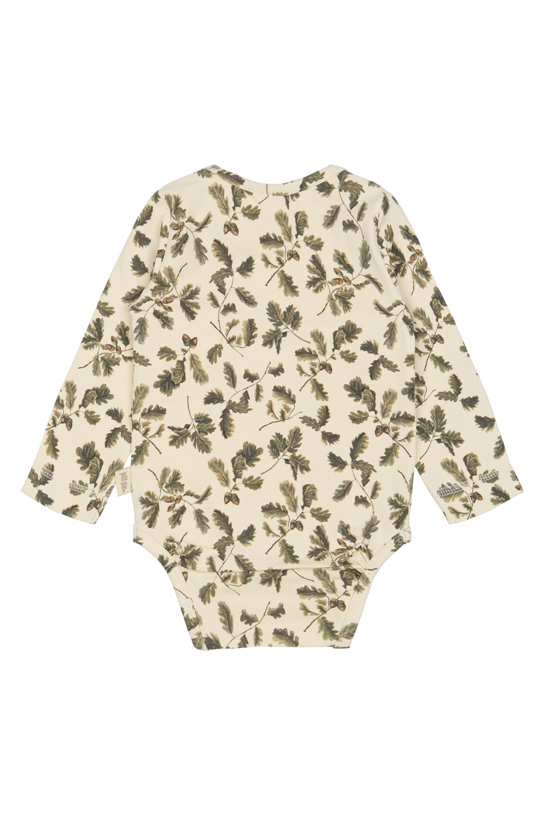 Petit Piao - Skøn body med egeblade, offwhite/grøn