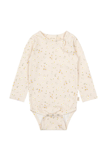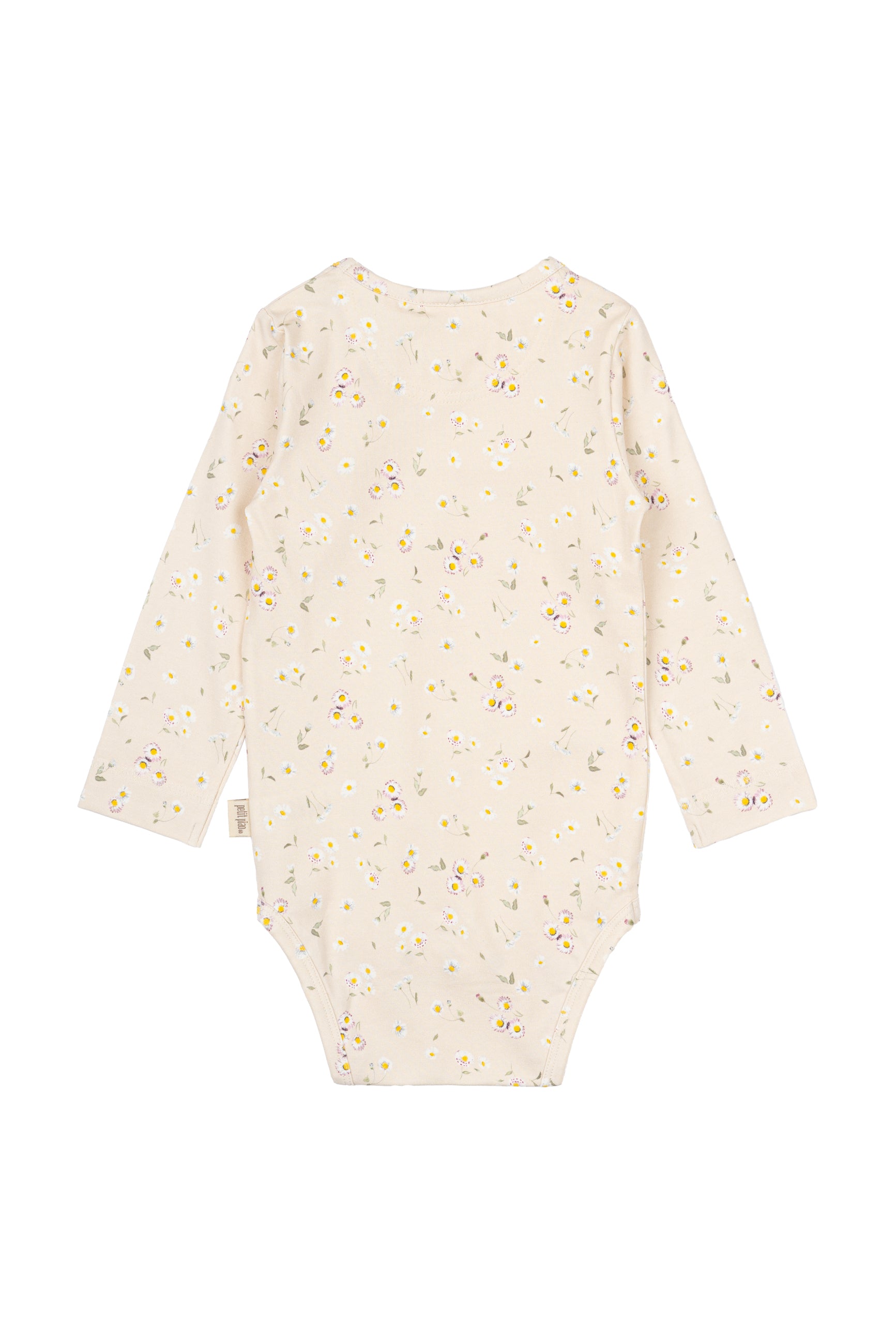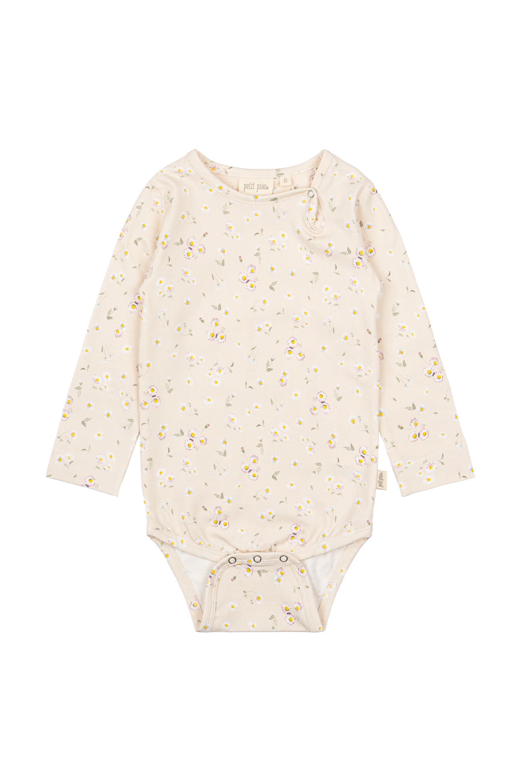 Denne langærmede body fra Petit Piao i farven Offwhite med det smukke Bellis mønster er både blød, strækbar og perfekt til de mindste. Fremstillet i en skøn blanding af 95% bomuld og 5% elastan, hvilket sikrer en behagelig pasform og god bevægelsesfrihed.