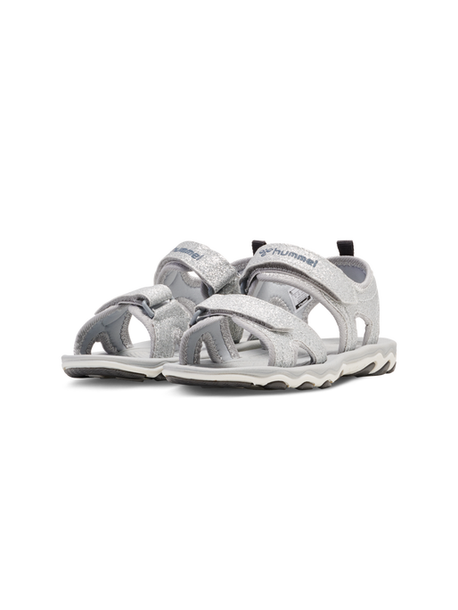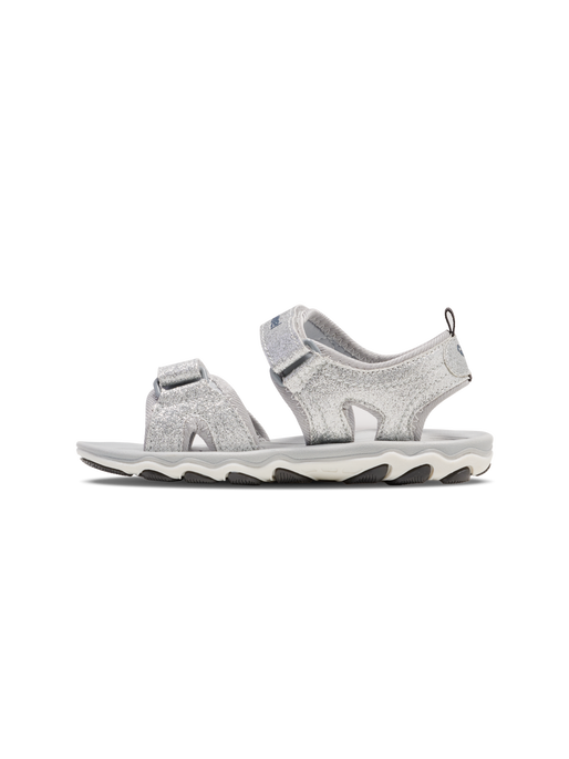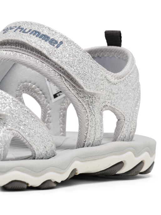 Hvordan kombinerer man glitterdrøm med praktik? Det gør man med disse fede sandaler fra Hummel. Fast hælkappe, solide velcro-bånd og en praktisk skridfast gummiydersål, der også er yderst slidstærk plus sølvglitter ud over det hele. Så er både mor og barn tilfreds!