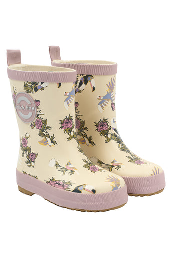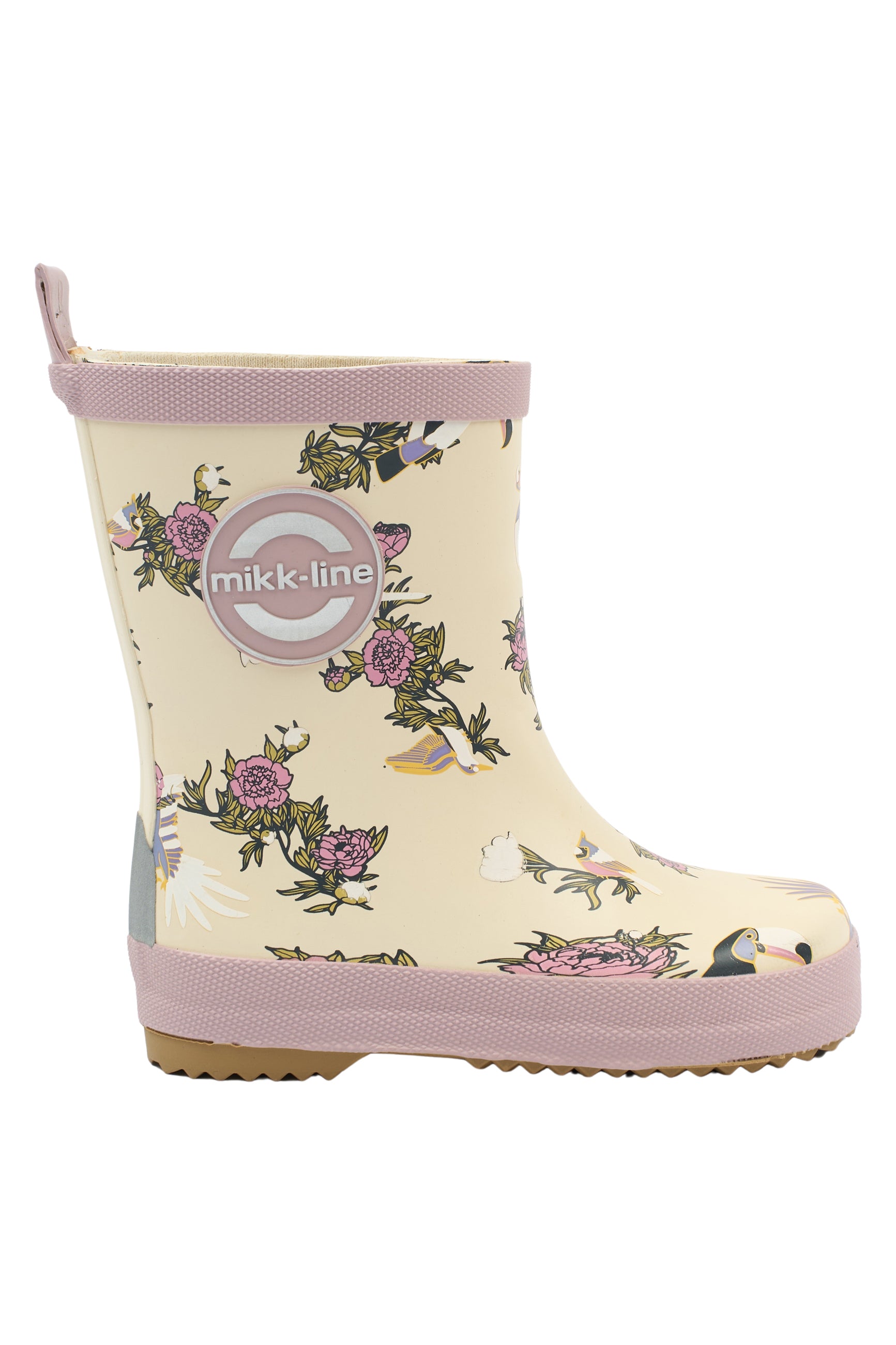 Disse smukke gummistøvler fra Mikk-Line i farven Woodrose med blomster- og tukanprint er perfekte til små eventyrere på regnvejrsdage. Fremstillet i 100% vandtæt gummi, hvilket gør dem fleksible, slidstærke og ideelle til leg i vandpytter og mudrede områder. Og så skifter det magiske print på gummistøvlerne farve når det bliver vådt!