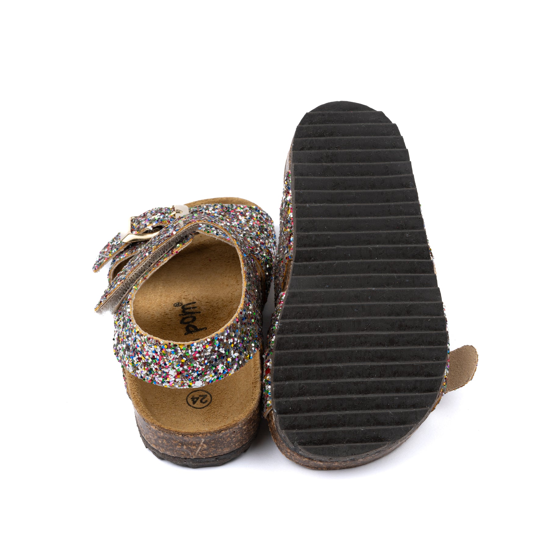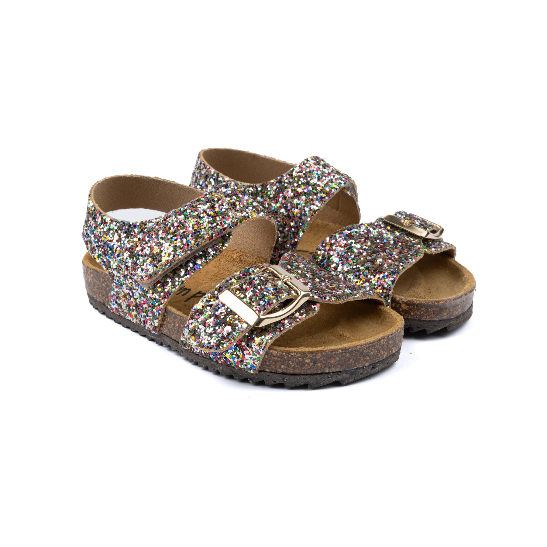 Disse smukke sandaler fra Pom Pom i farven Multi Sprinkle er både funklende, komfortable og perfekte til små fødder, der elsker et strejf af glimmer. Fremstillet i 100% læder, hvilket gør dem bløde, fleksible og åndbare, så fødderne holdes komfortable hele dagen.
