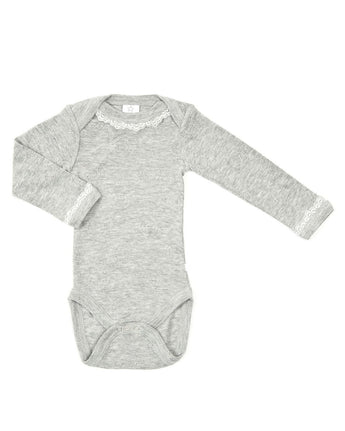 Smallstuff - sød langærmet body med blonde i lysegrå