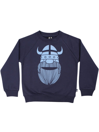 Rigtig lækker blød sweatshirt med vikingen Erik i en flot navy farve. Sweatshirten er i en dejlig blød og elastisk sweat-kvalitet og er børstet på indersiden for at opnå ekstra blødhed mod huden.