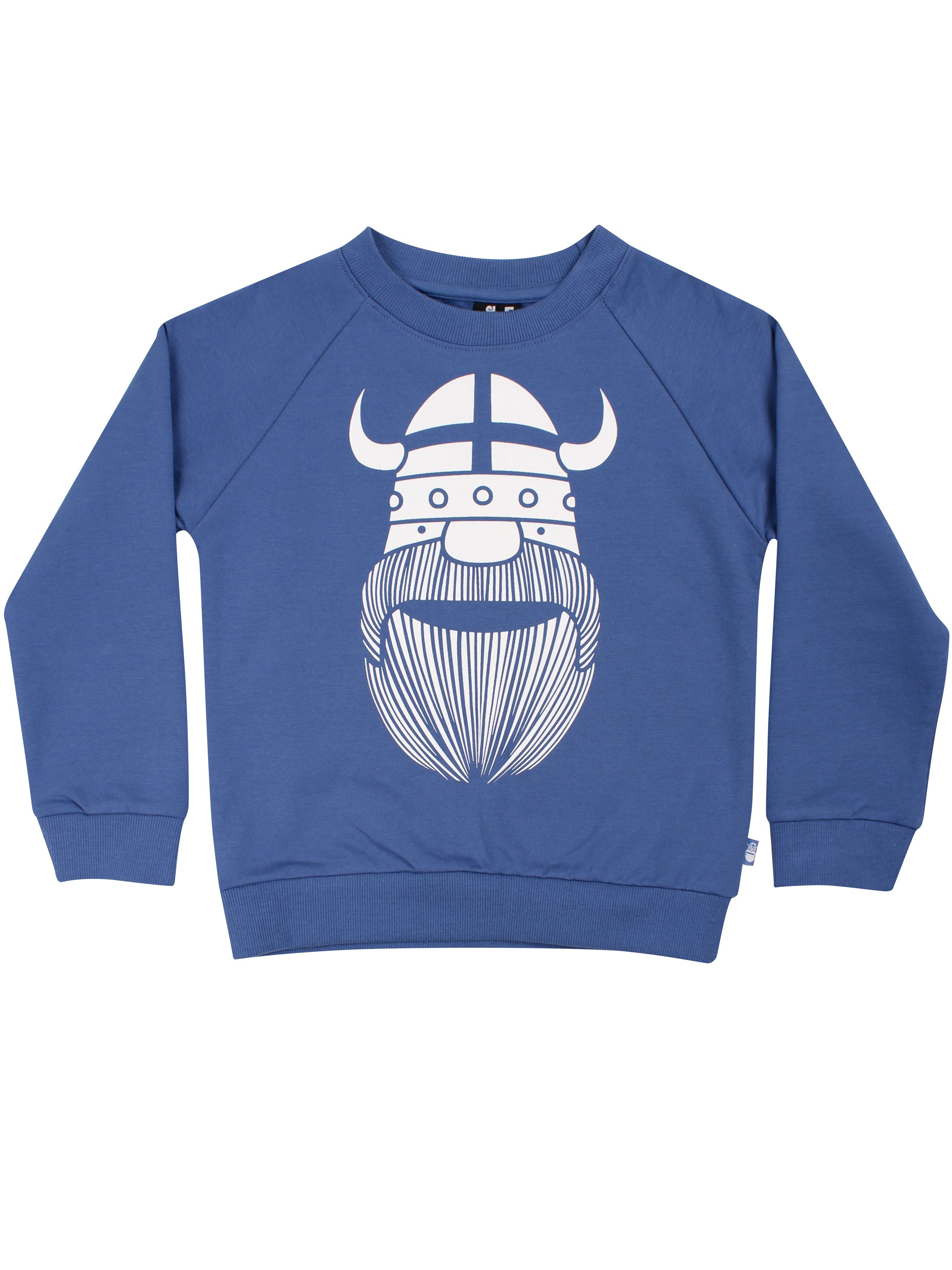 Klassisk flot sweater i en lækker tyk kvalitet fra Danefæ i en herlig støvet blå farve og den seje Viking Erik. Perfekt til leg og lopper!
