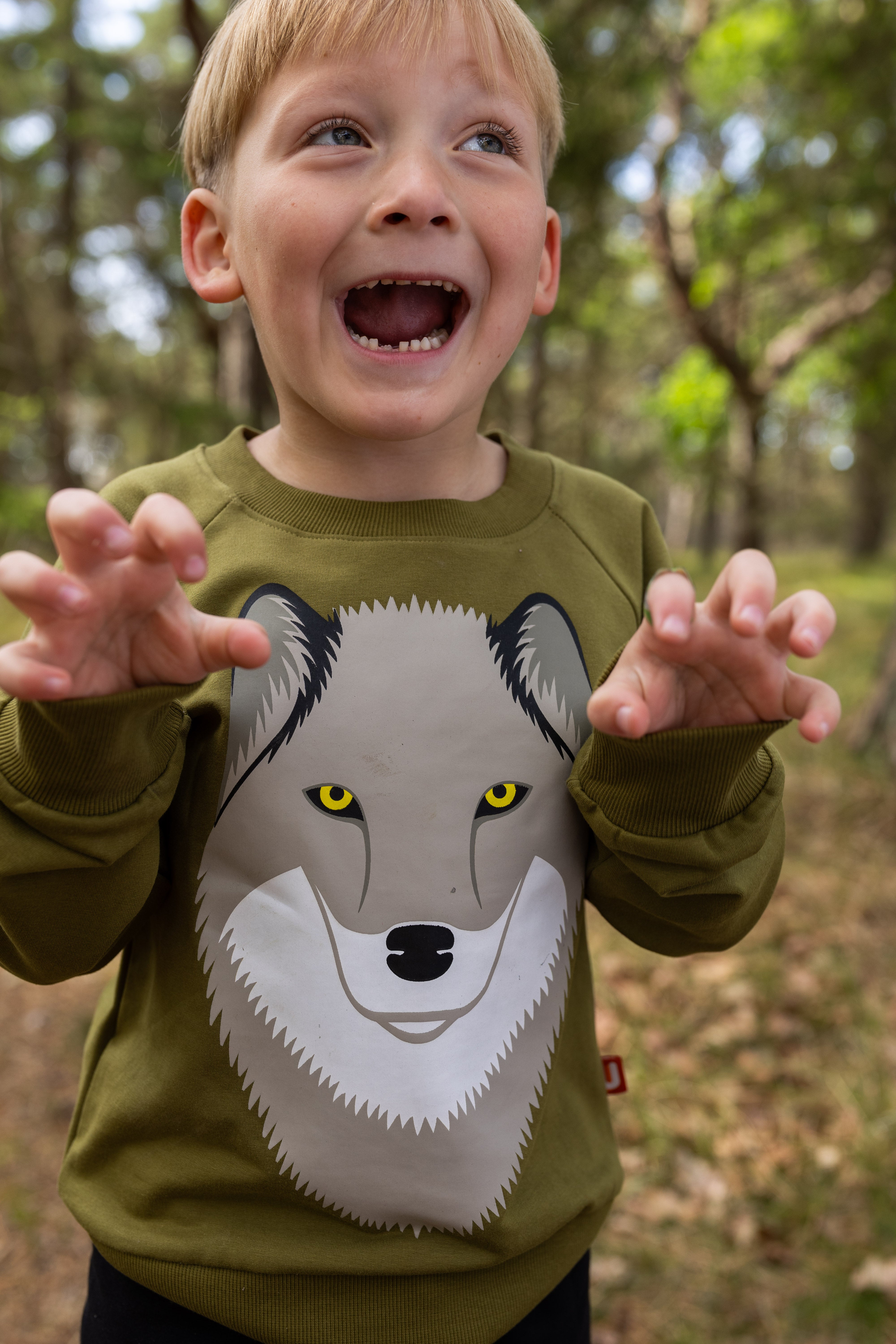 Danefæ DYR - Dyrbellow - Blød sweatshirt med ulv, olivengrøn