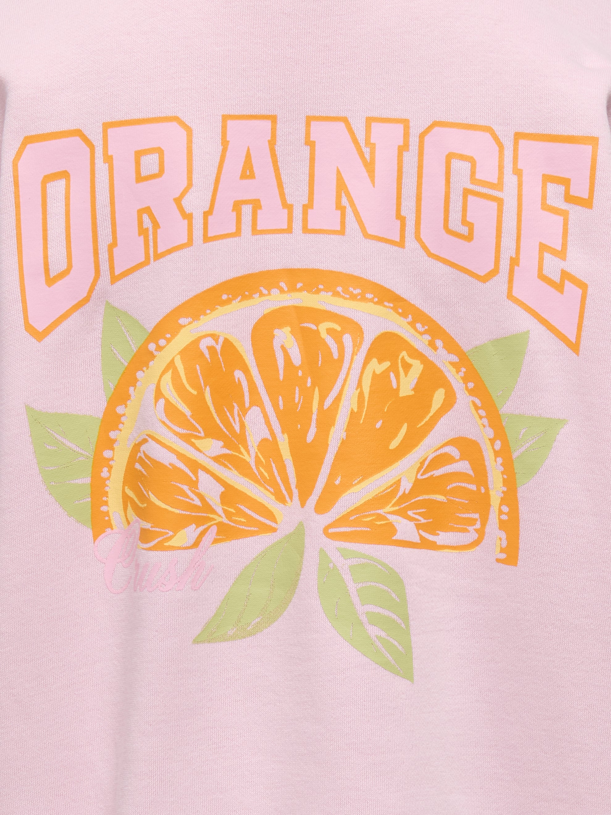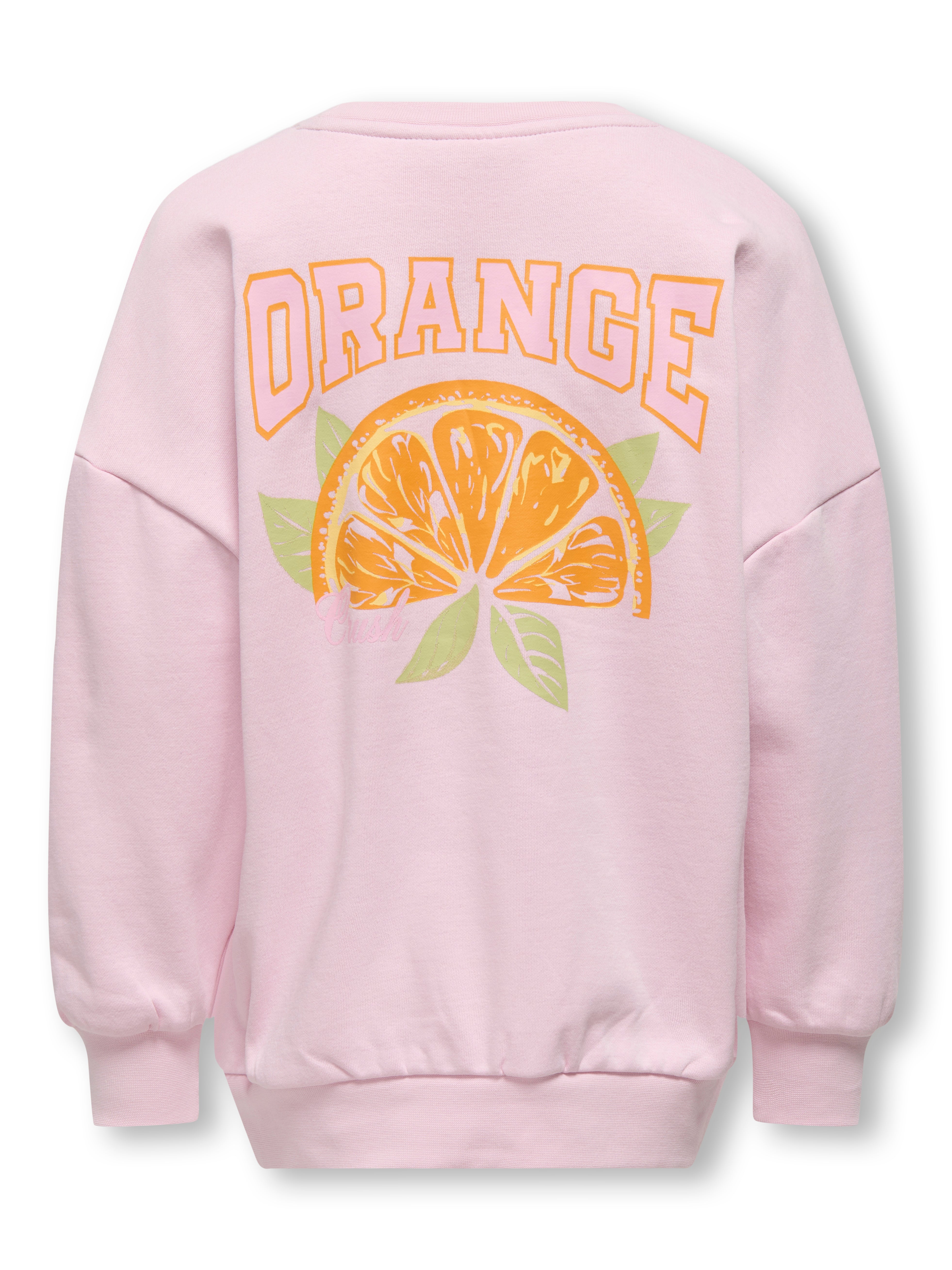 Denne oversized sweatshirt fra Only Girls i en fin lyserød farve er et must-have i enhver garderobe. Den er lavet af økologisk bomuld, hvilket sikrer både komfort og bæredygtighed. Den har et cool og iøjnefaldende appelsin-print på ryggen, der er inspireret af en frisk appelsin, hvilket giver den et ungdommeligt og energisk udtryk. Den har et subtilt "ORANGE"-print på forsiden, der giver et diskret touch til designet.