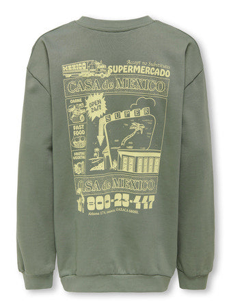 Denne fede, grønne sweatshirt med det sjove supermarked (supermercado) print på både ryg og bryst er den perfekte lune trøje året rundt. Et hit i teenage-garderoben!