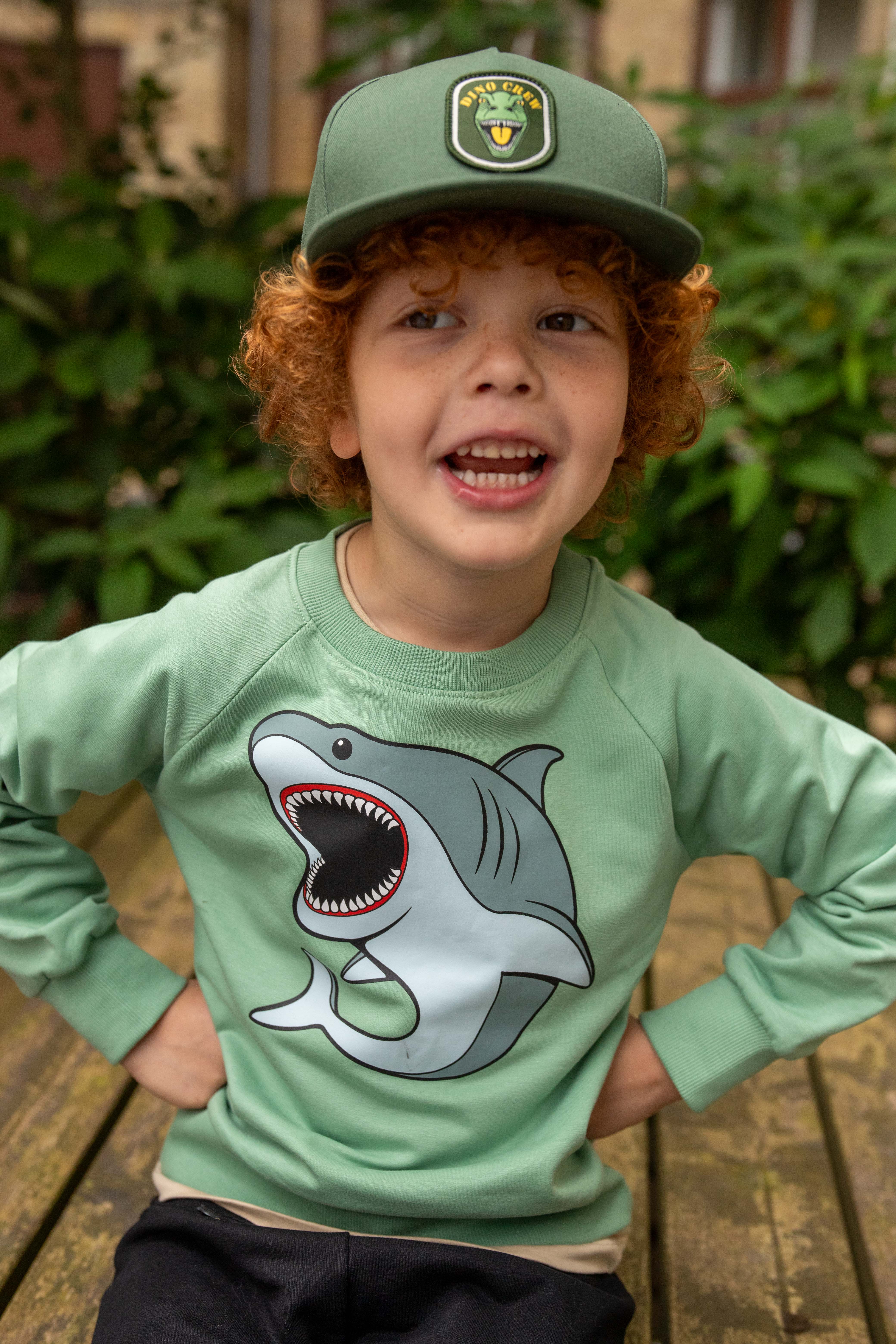 Danefæ DYR - Dyrbellow - Skøn sweatshirt med haj i grøn, herb green