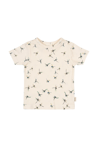 Denne fine t-shirt fra Petit Piao i farven Off White med det smukke Dragonfly print er både blød, strækbar og perfekt til hverdagsbrug. Fremstillet i en skøn blanding af 95% bomuld og 5% elastan, hvilket sikrer en behagelig pasform og god bevægelsesfrihed.