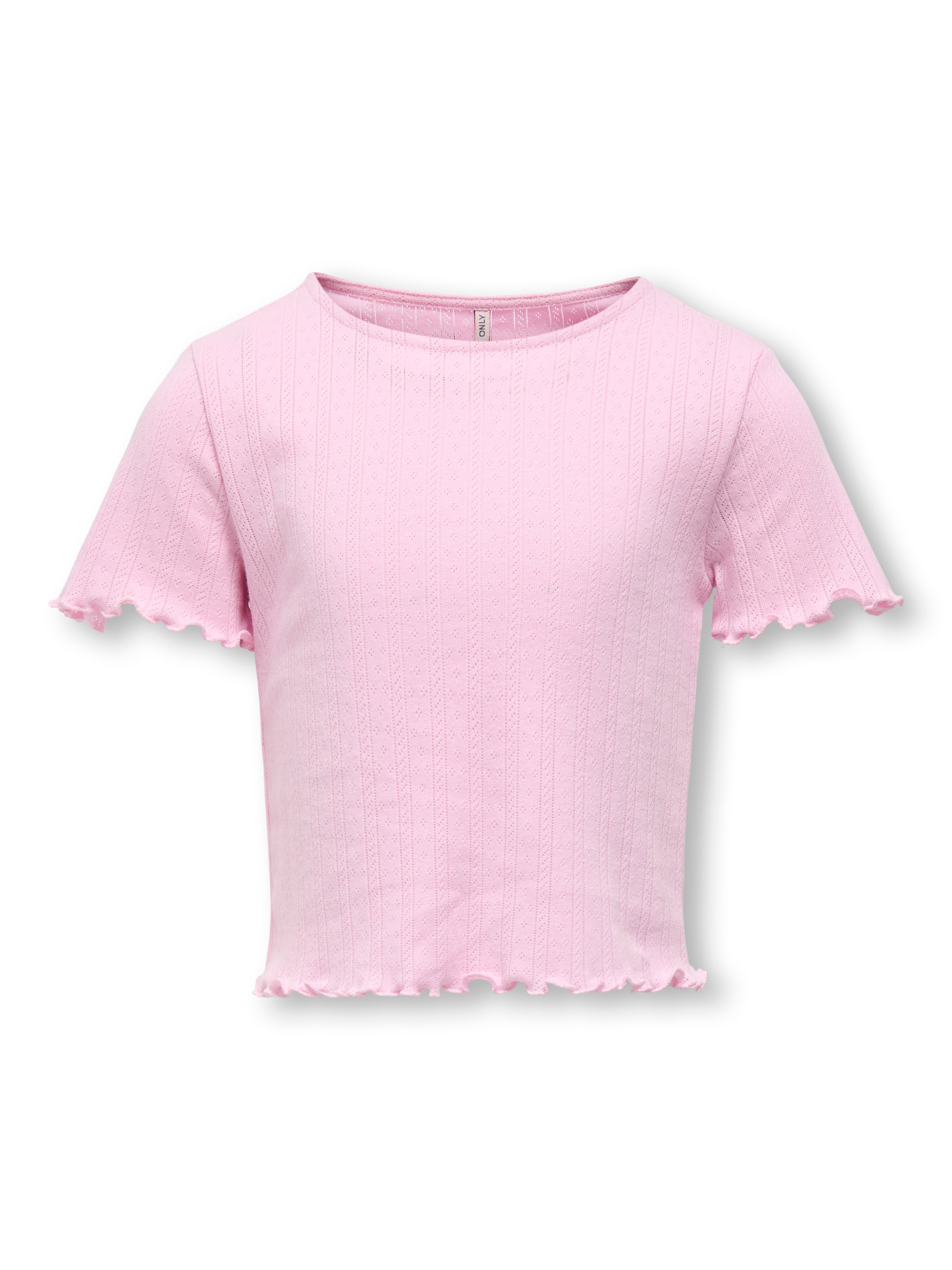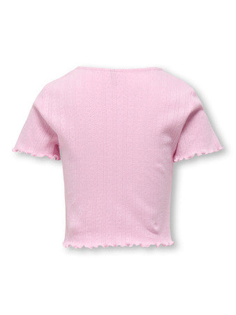 Kids Only - KogCarlotta T-shirt er en stilfuld og komfortabel t-shirt, der passer perfekt til både hverdag og afslapning. Denne t-shirt er lavet af blødt og åndbart materiale, der sikrer, at dit barn føler sig godt tilpas hele dagen. T-shirten har et simpelt og moderne design, hvilket gør den nem at kombinere med både jeans, shorts eller nederdele. Den har en god pasform, der giver god bevægelsesfrihed til alle aktiviteter.