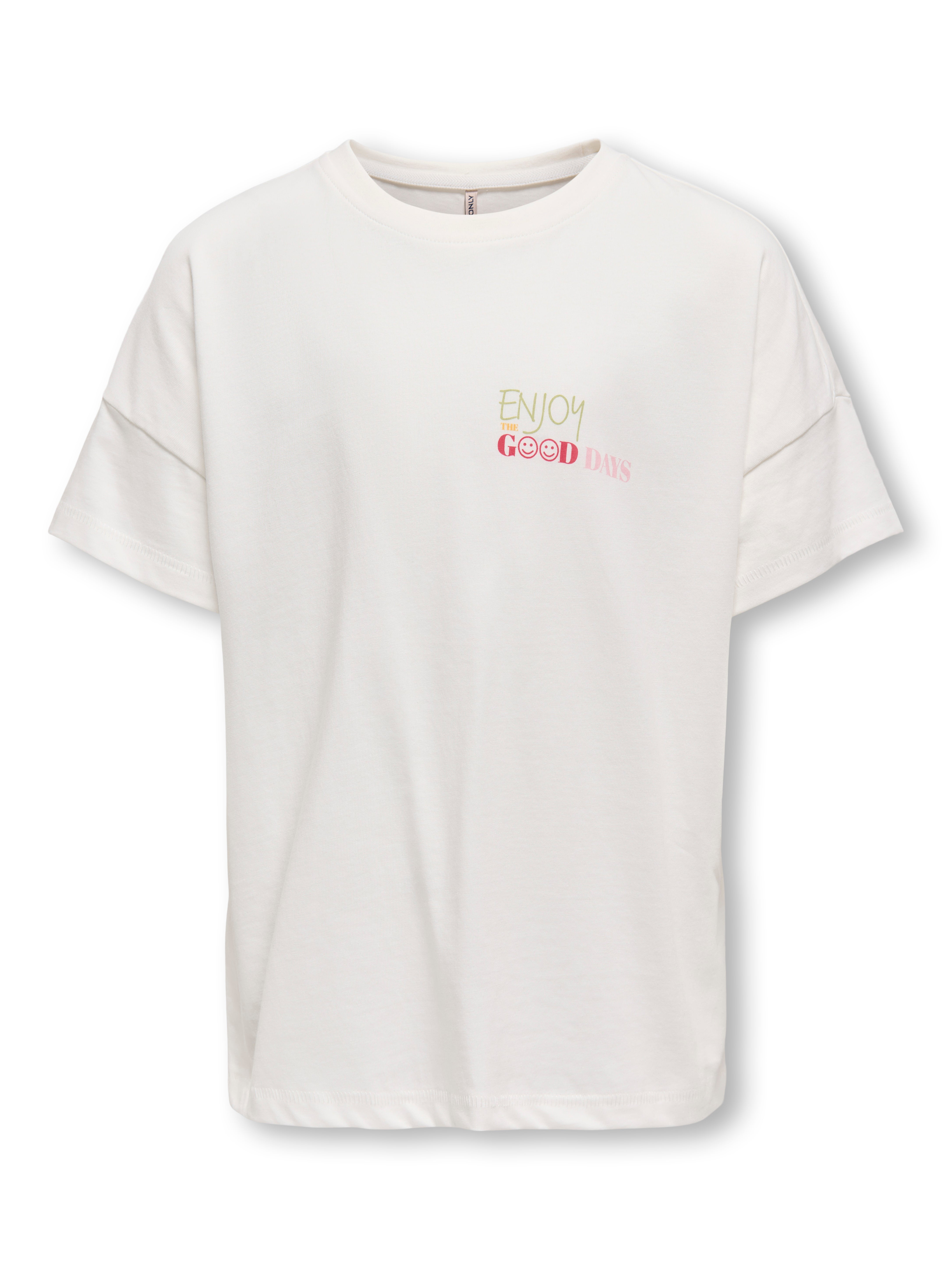 Denne T-shirt fra Only Girls i favre cloud dancer sun er perfekt til de unge, der elsker at udtrykke sig med cool og moderne stil. I den lette farve Cloud Dancer Sun er T-shirten designet med en oversized pasform, der sikrer både komfort og et afslappet look. Med sin rundhalsede halsudskæring og dropped shoulders får du et moderne udtryk.