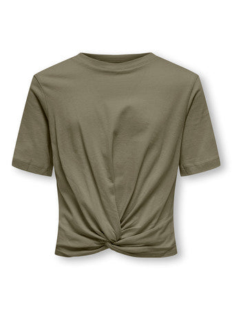 Only Girls - KogRex - T-shirt i armygrøn med sej knudedetalje
