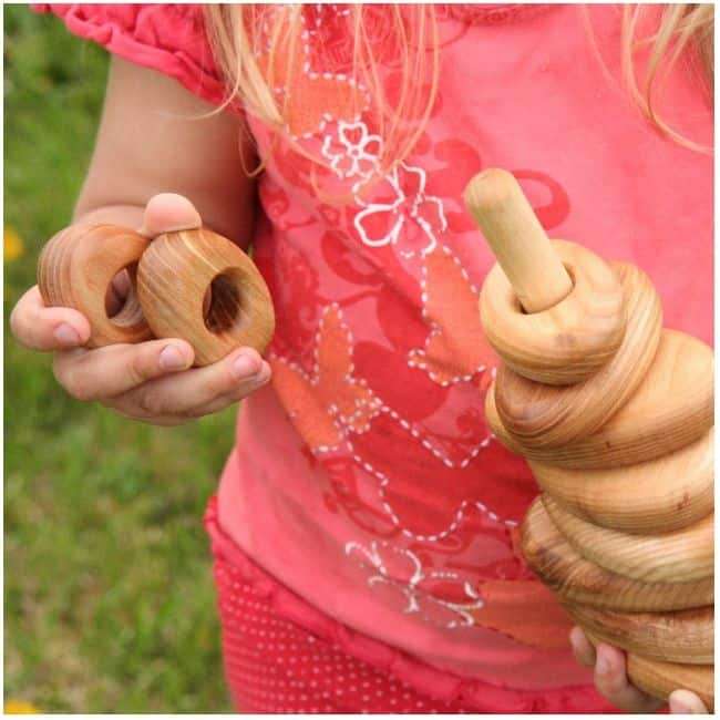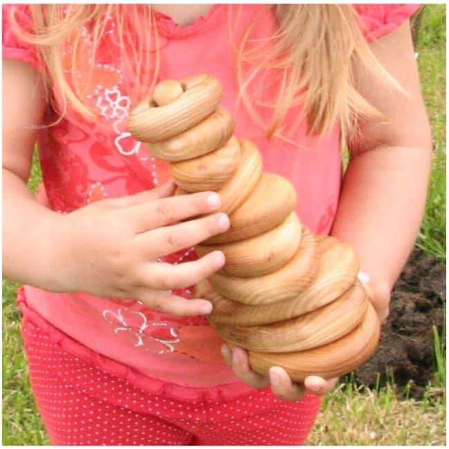 Virklig sødt,  håndlavet  stabletårn med 9 ovale, løse ringe, for de lidt større og store børn.